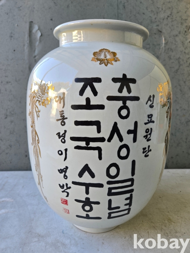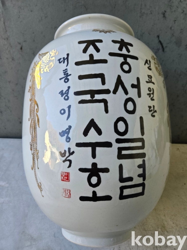 충성일념 조국수호 글씨 도자기 입니다.