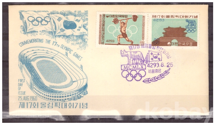 (초일봉피) 1960.8.25 제17회 올림픽대회 기념 FDC (서울중앙 4293.8.25)