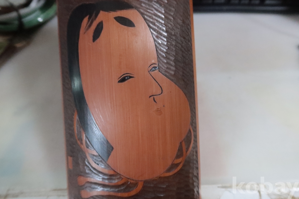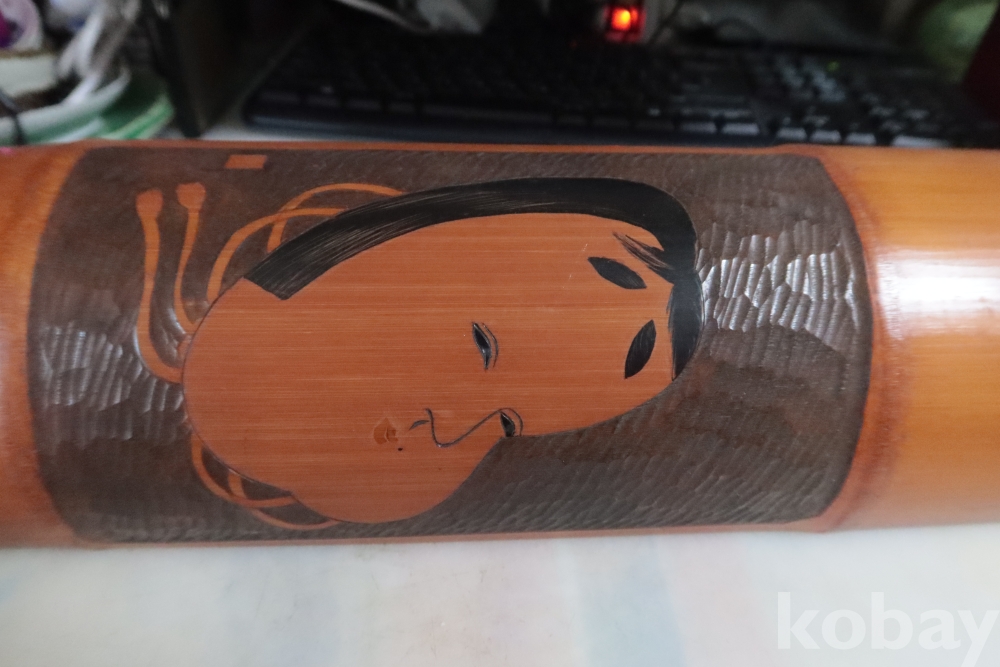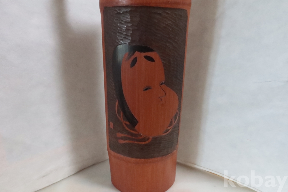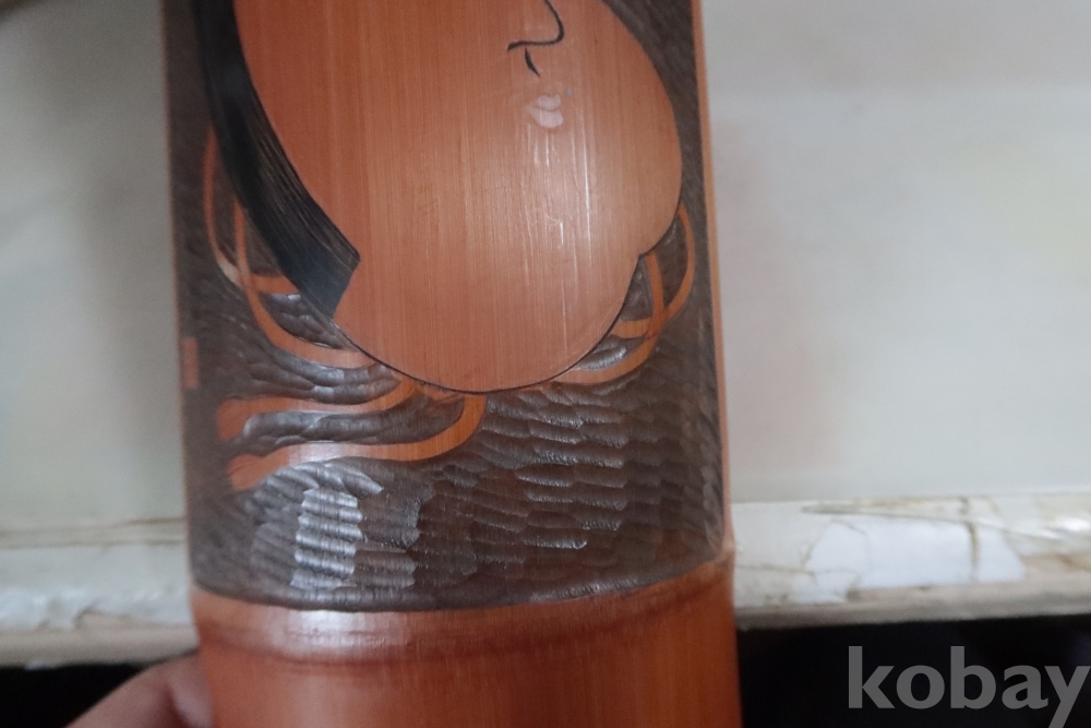 조각가의 낙관을 가진 일본 대나무 조각공예품 임니다 일본 오후쿠를 조각한 섬세하고 정성을 가진 귀한 명품 임니다