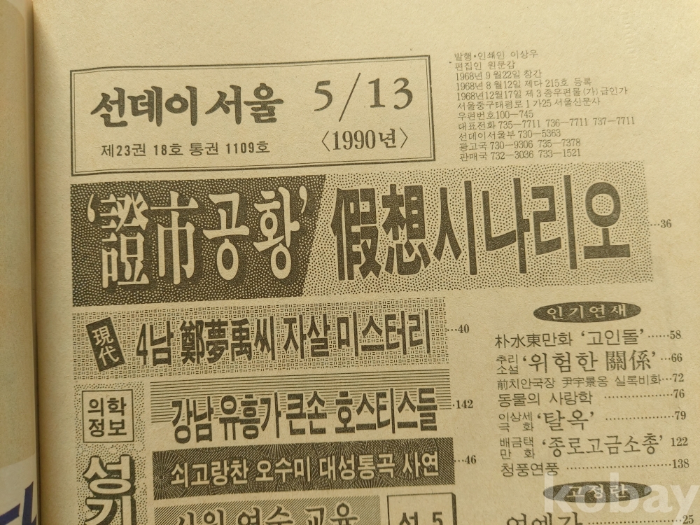 - 1990년 05월13일발행.(제23권18호) 제1109호.
