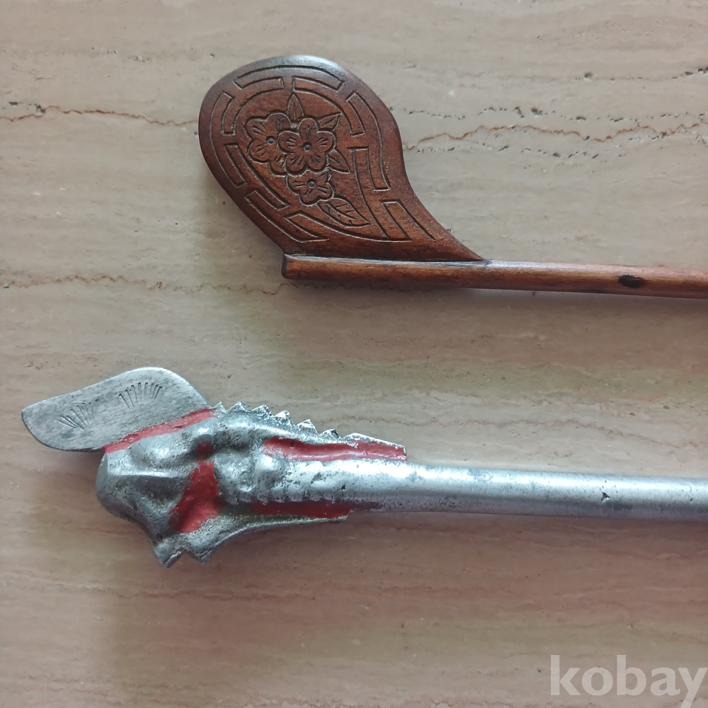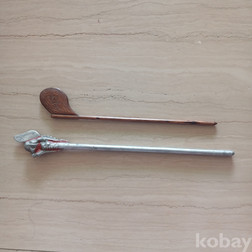 옛날 살림이 어려운 서민들이 사용했던 비녀입니다ㆍ하나는 백철용잠이고 하나는 나무로깍아 매화푸늬를 조각했군요ㆍ 당시로는 서민용이지만 지금은 더귀한 수집품이 되겠네요 2개몽땅입니다