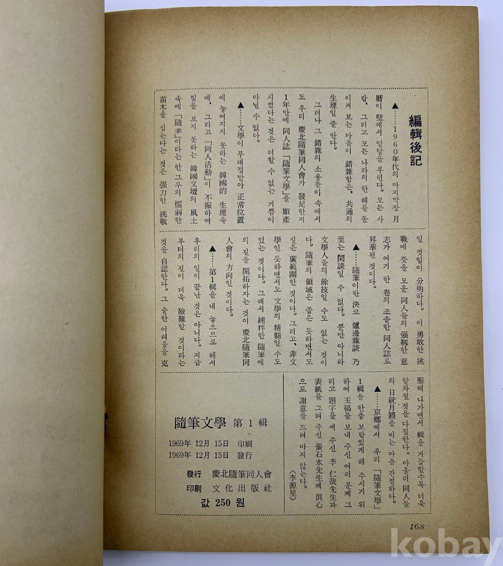 물 품 명 | <좋-았書! 1탄> [62] 1969년 발행, 문예지 [수필문학] 창간호 서명본 1책 | |||||