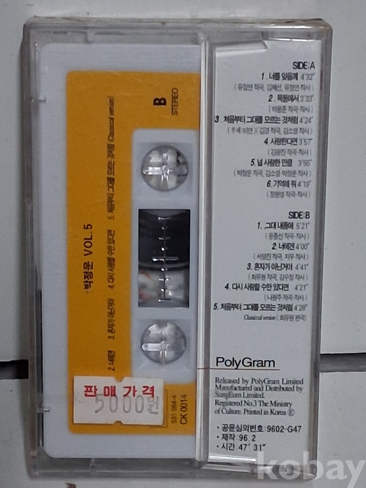 미개봉, 박 정 운 5 집 그대내품에 ,,,,카세트테이프