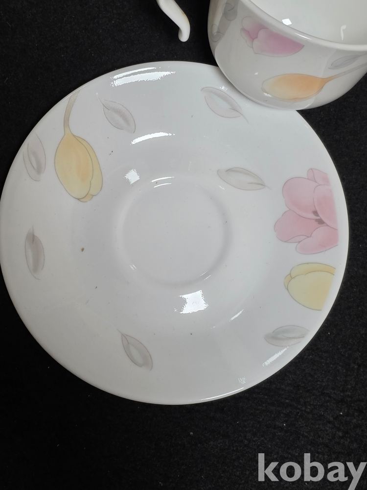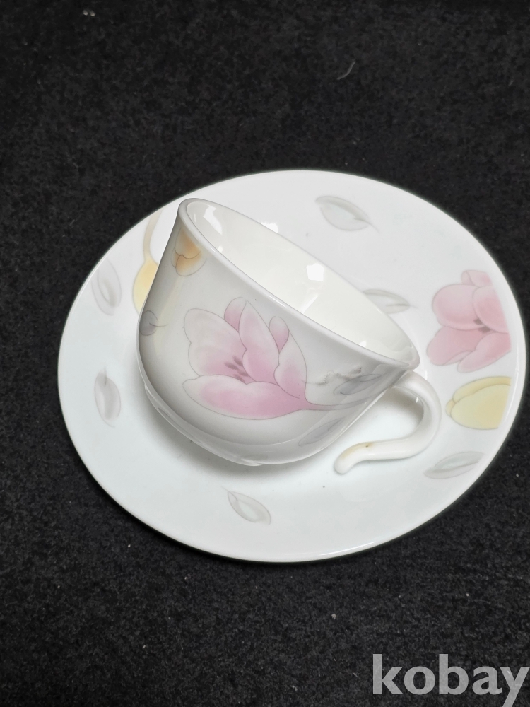​​​​(((빈티지커피잔))) 오래전 미국에서만든 백합꽃그림 LACORELLE (코렐)  by CORNING (코닝) 갈고리 커피잔 & 잔받침
