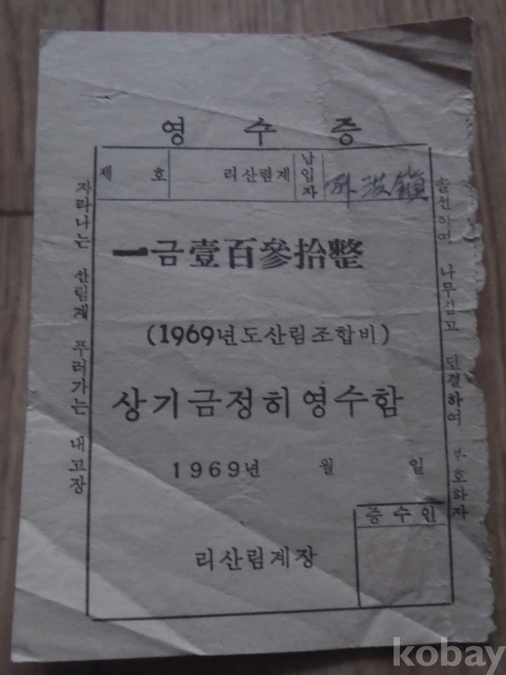 1969년 영동군 산림조합비 영수증