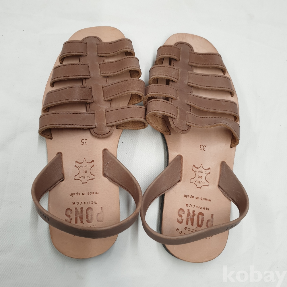[*천원행복*] S - 3 - 1002 폰즈 가죽 샌들 (브라운, 35사이즈)