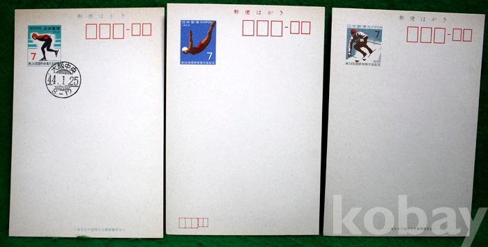(일본 우편엽서) 1969년 제24회 국민체육대회기념 우편엽서 3종