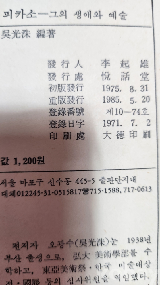 1975년 발행된 세계미술문고 피카소 편 입니다,