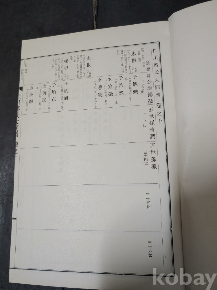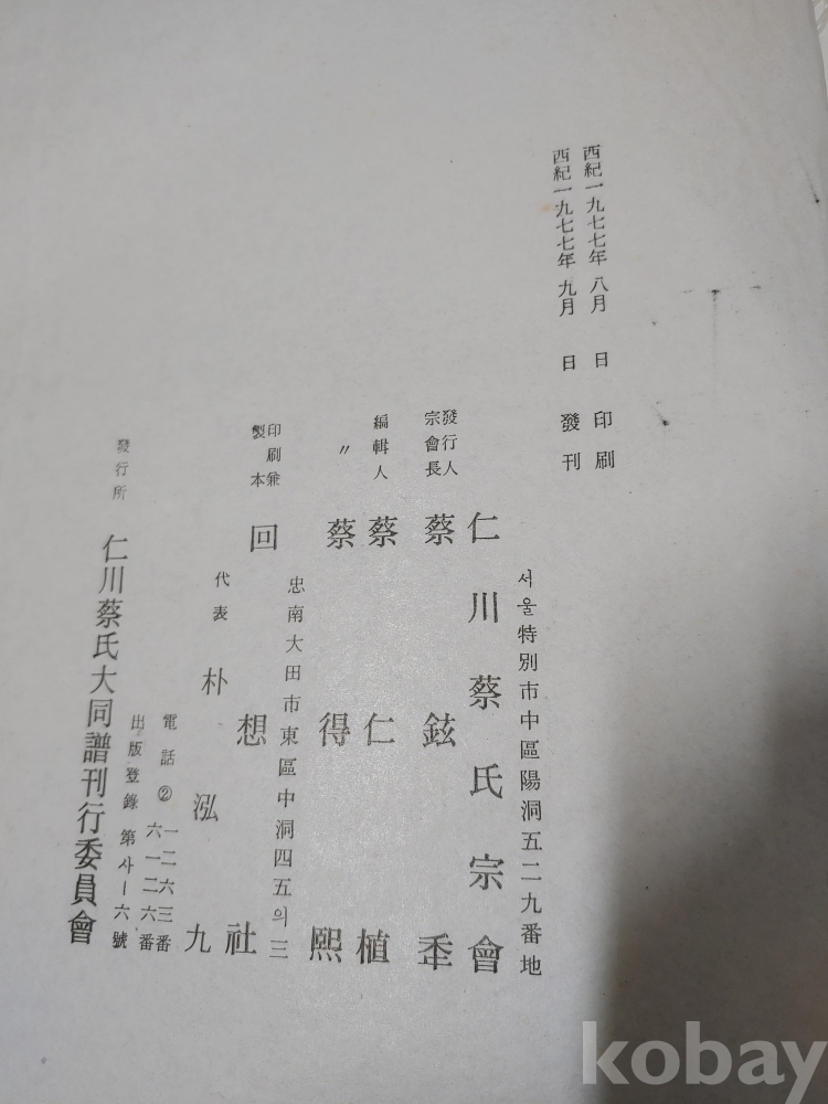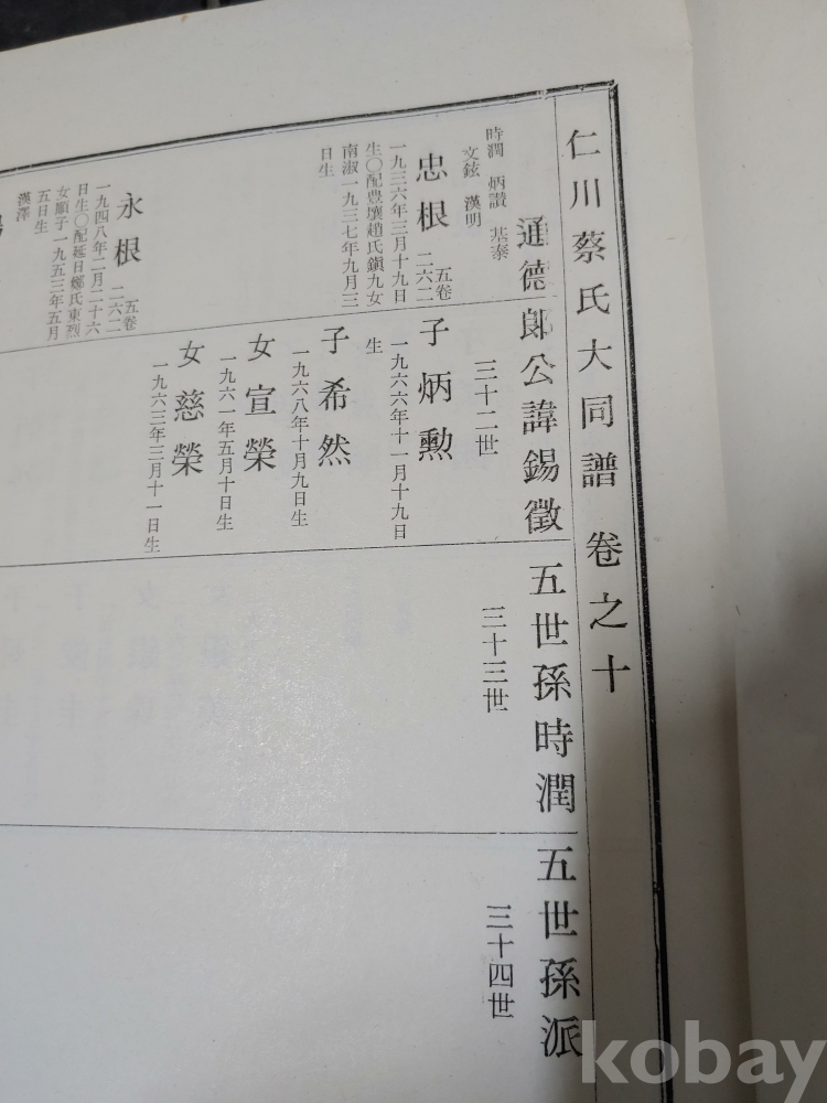 ""인천 채씨 대동보 족보""