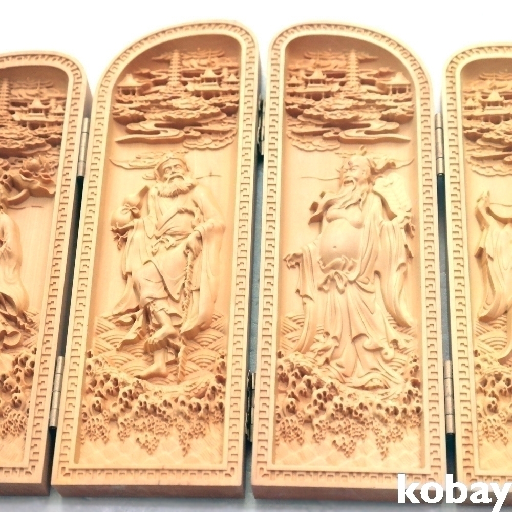 나무를 조각하여 만들어진 8폭 석가모니 관세음보살 불감 입니다.