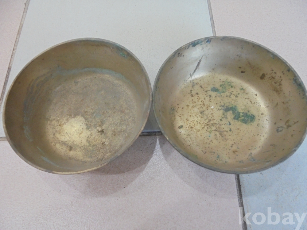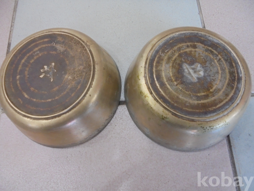 오래된 추억의 국그릇겸 국밥그릇으로 부한집이나 영업집에서 사용하던 완벽한 오래된 유기 뱅뱅돌이 2점