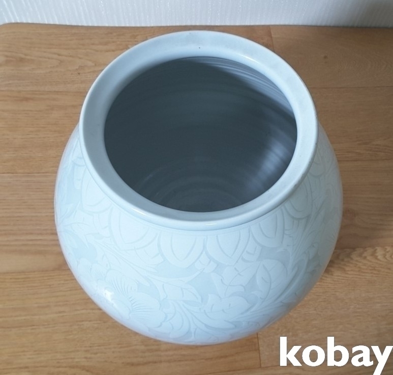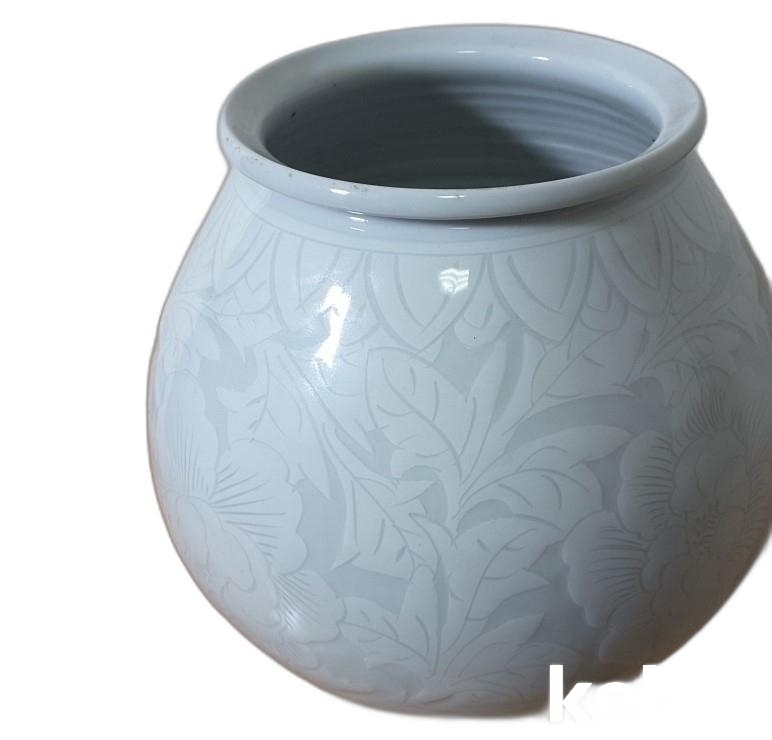 도자기 전체에 목단 꽃 문양이 있습니다.