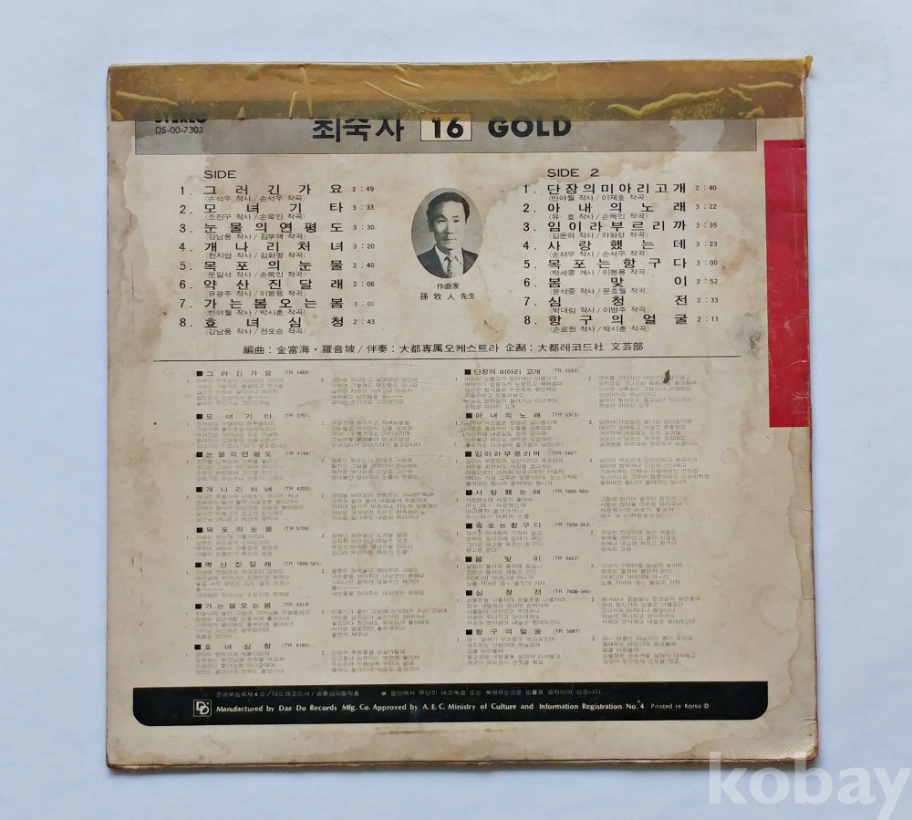 EX : 약간의 마모, 모서리 찢김 존재 음반상태