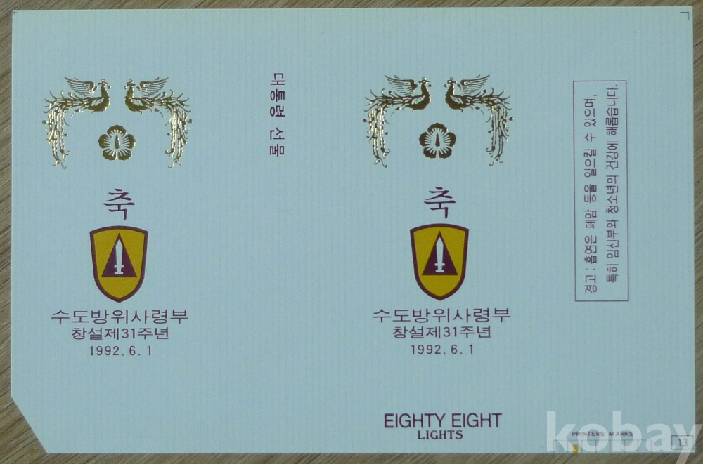 1992년 수도 방위 사령부 창설 31주년 기념 대통령 하사 88 라이트 담배 포갑지