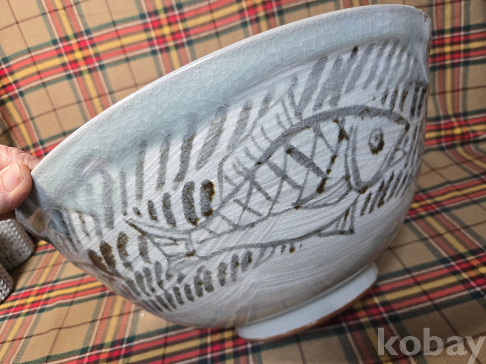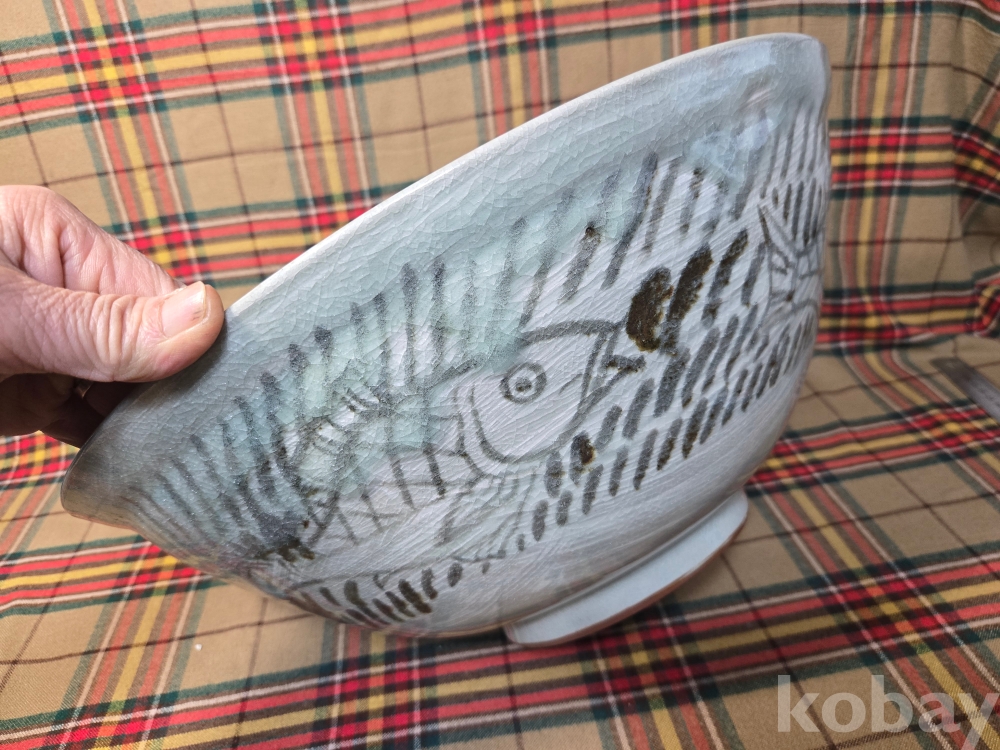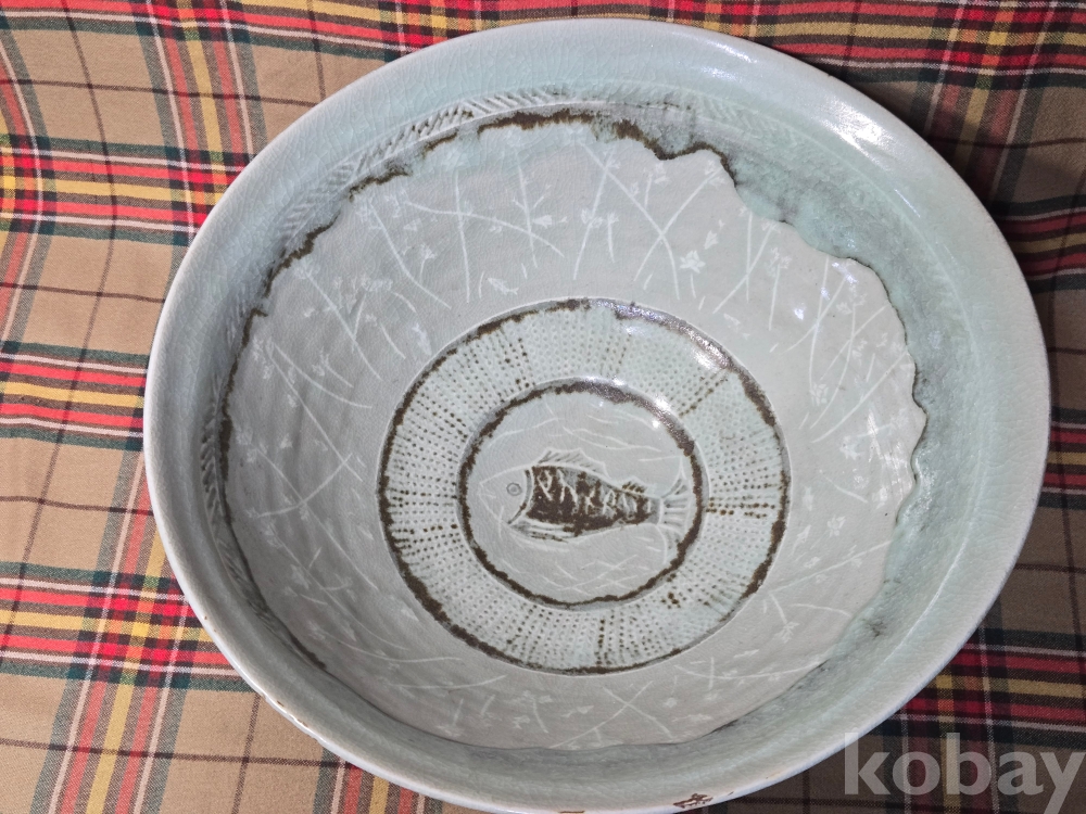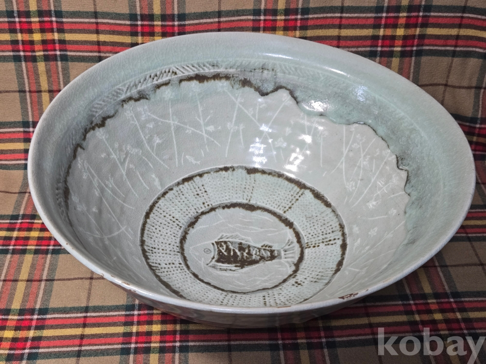 한국 현대도예의 상징과도같은 도예의 신, 장여 신정희 선생의 70년대작 추정, 초대형 청자흑백상감 철화 어문수반입니다.