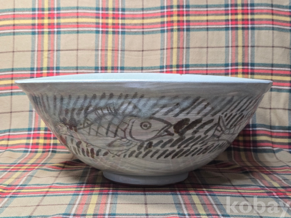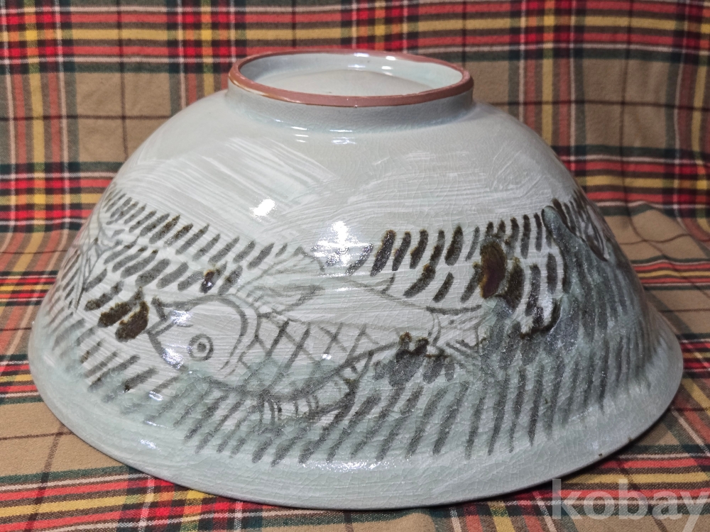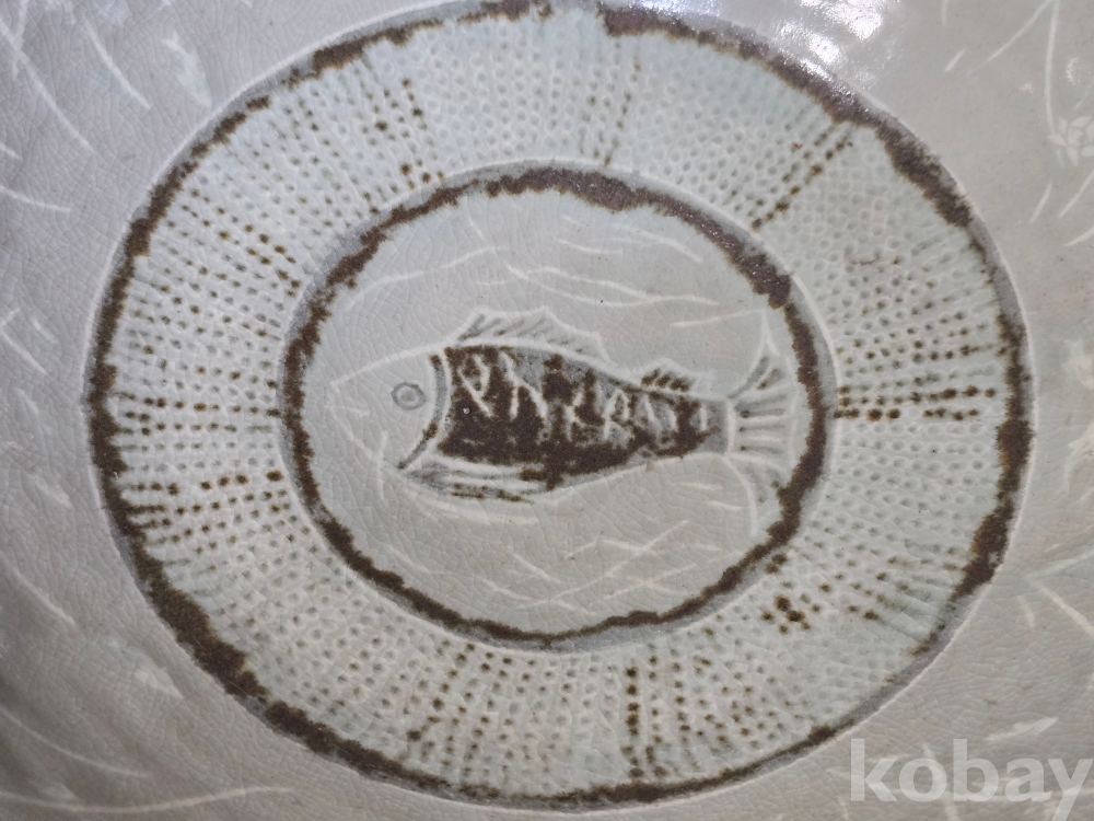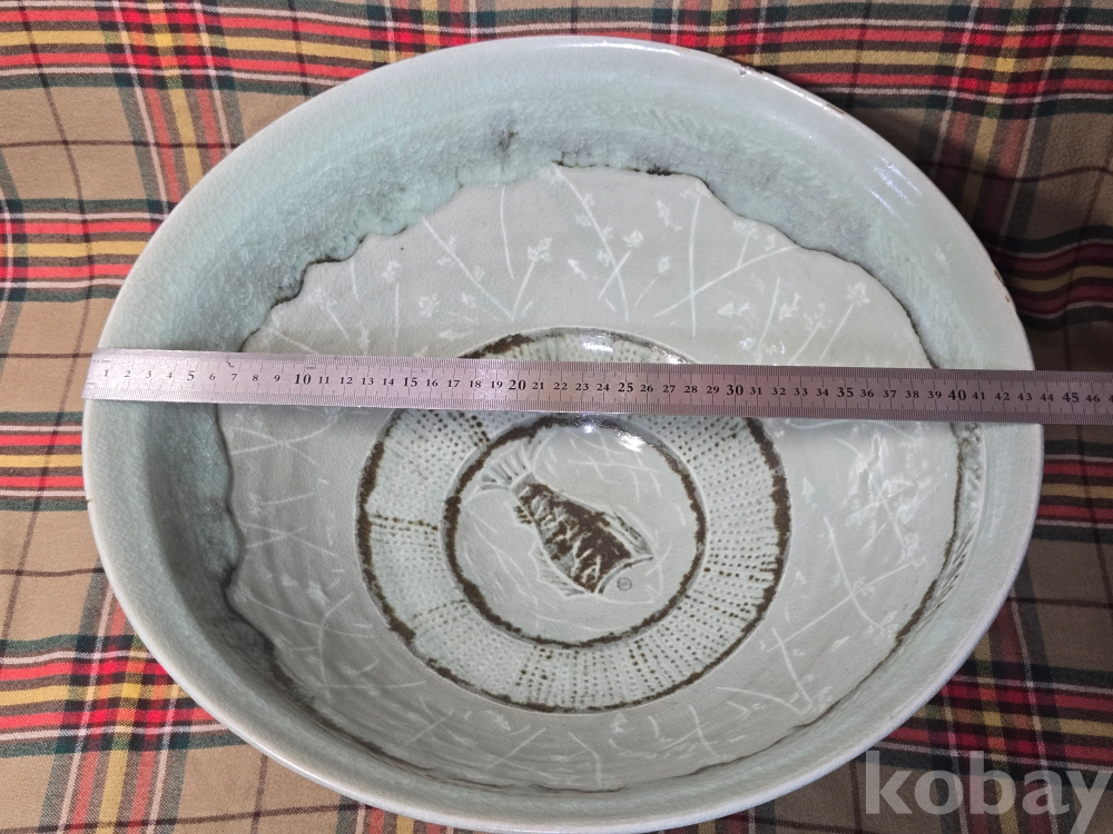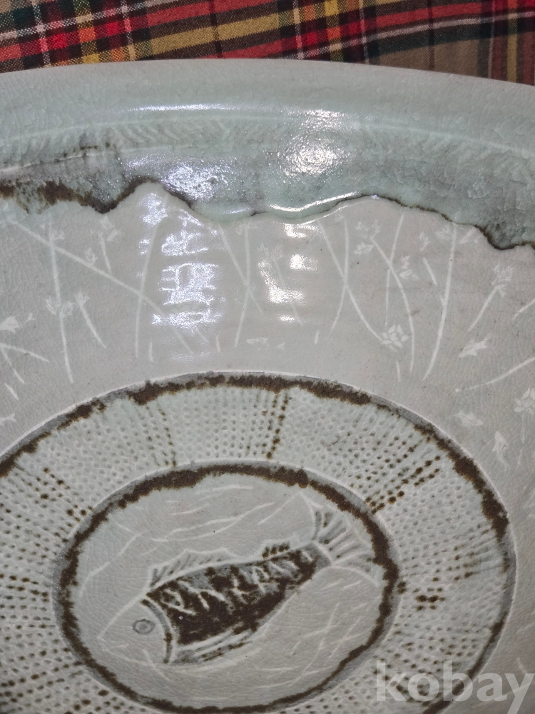 한국 현대도예의 상징과도같은 도예의 신, 장여 신정희 선생의 70년대작 추정, 초대형 청자흑백상감 철화 어문수반입니다.