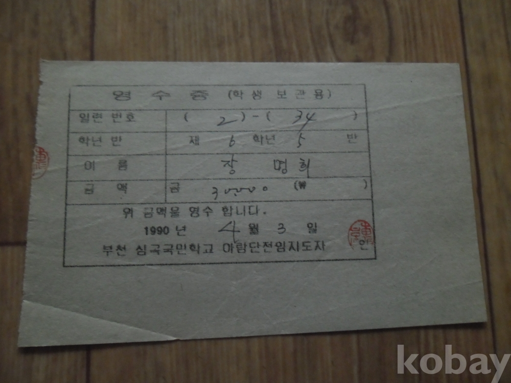 1990년 부천심곡국교 아람단 발행 영수증
