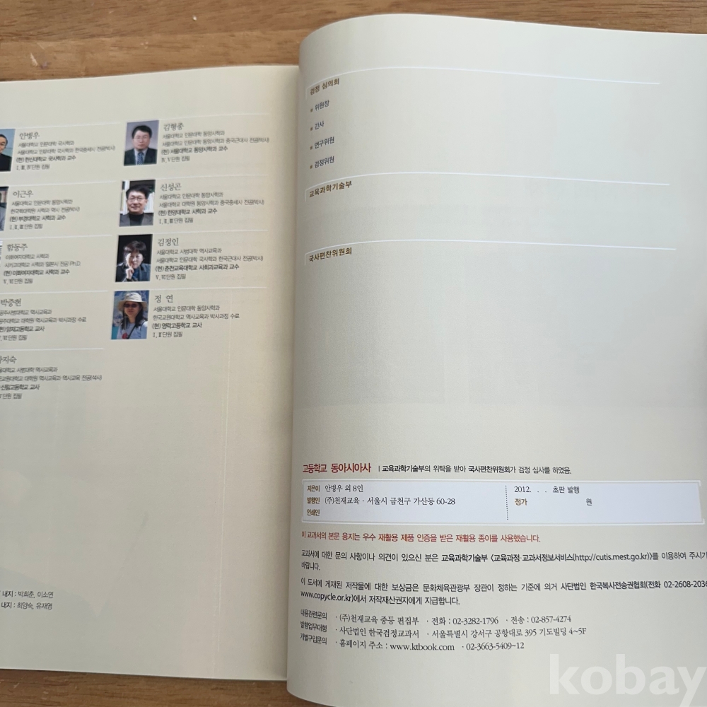 [한국현대사, 동아시아사 교과서] 안병우 등, <고등학교 동아시아사>, 천재교육, 2011, p. 287, 상태 중상급(사진참조)
