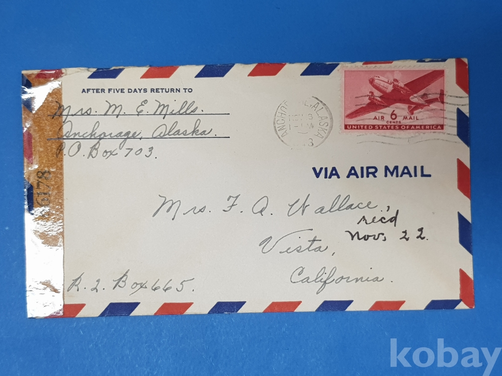 **** [테마자료] 제2차세계대전시 검열우편 실체봉투(검열테이프 부착)