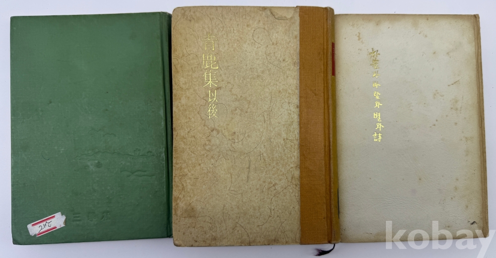 설 명 | ① 1965년 삼학사 발행, 노산 이은상 시집 [무상] 5판본 ② 1968년 현암사 발행, [청록집 이후] 초판본 1책 ③ 1975년 정음사 발행, 윤동주 시집 [하늘과 바람과 별과 시] 8판본 1책 | |||||