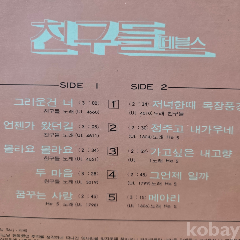 상품 설명 | Side A 1. 그리운건 너 2. 언젠가 왔던길 3. 몰라요 몰라요 4. 두 마음 5. 꿈꾸는 사랑 Side B 1. 저녁한때 목장풍경 2. 정주고 내가우네 3. 가고싶은 내고향 4. 그언제 일까 5. 메아리 |