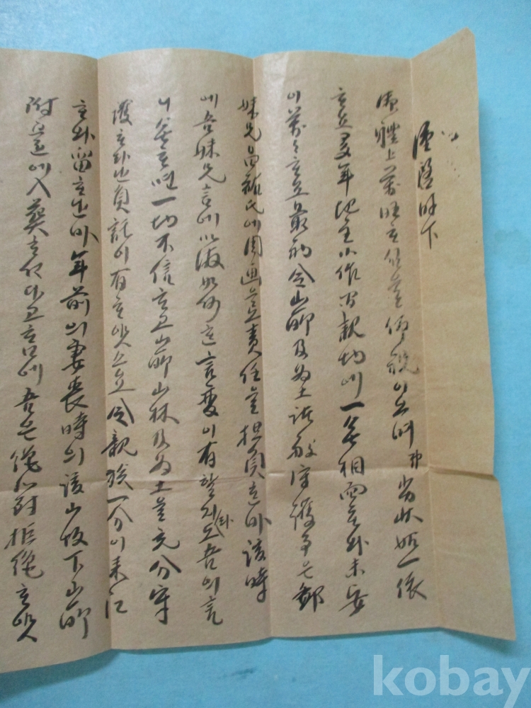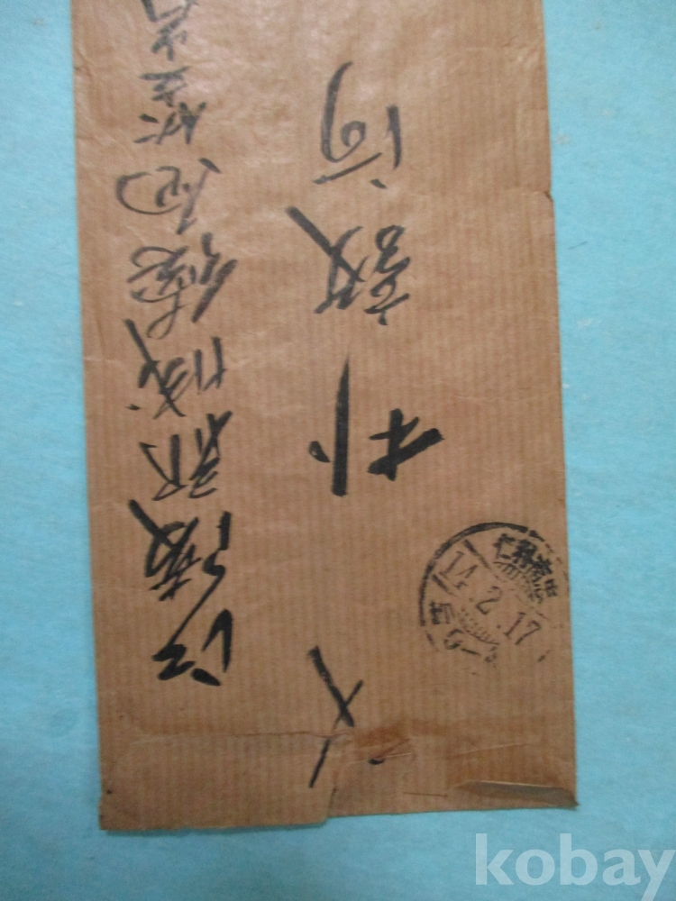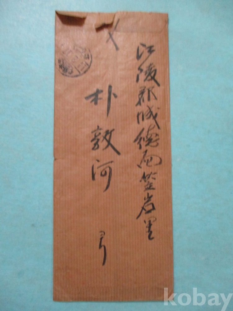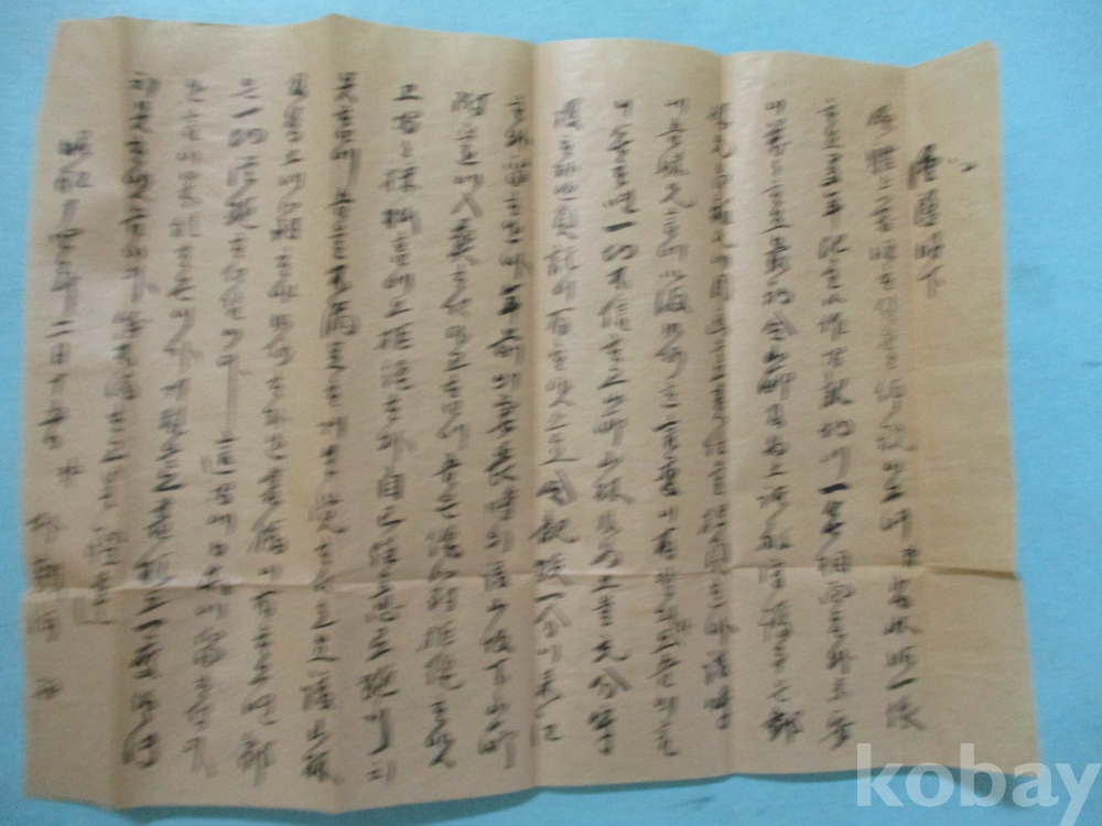 봉피 8,5 x 20,5cm 간찰 33,5 x 24,3cm 소화 14년인 1939년 2월15일에 양지에 쓰인 국,한 혼용의 간찰