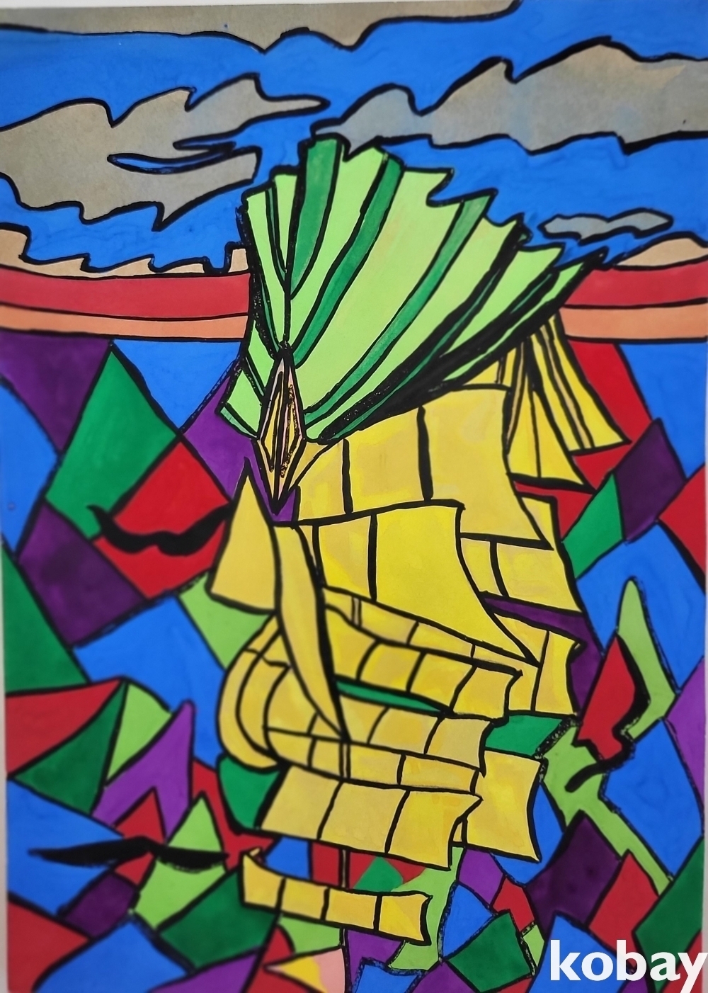 서양화가 이주영 내용이 보이는 "미래를 위한 항해" 범선 그림입니다,