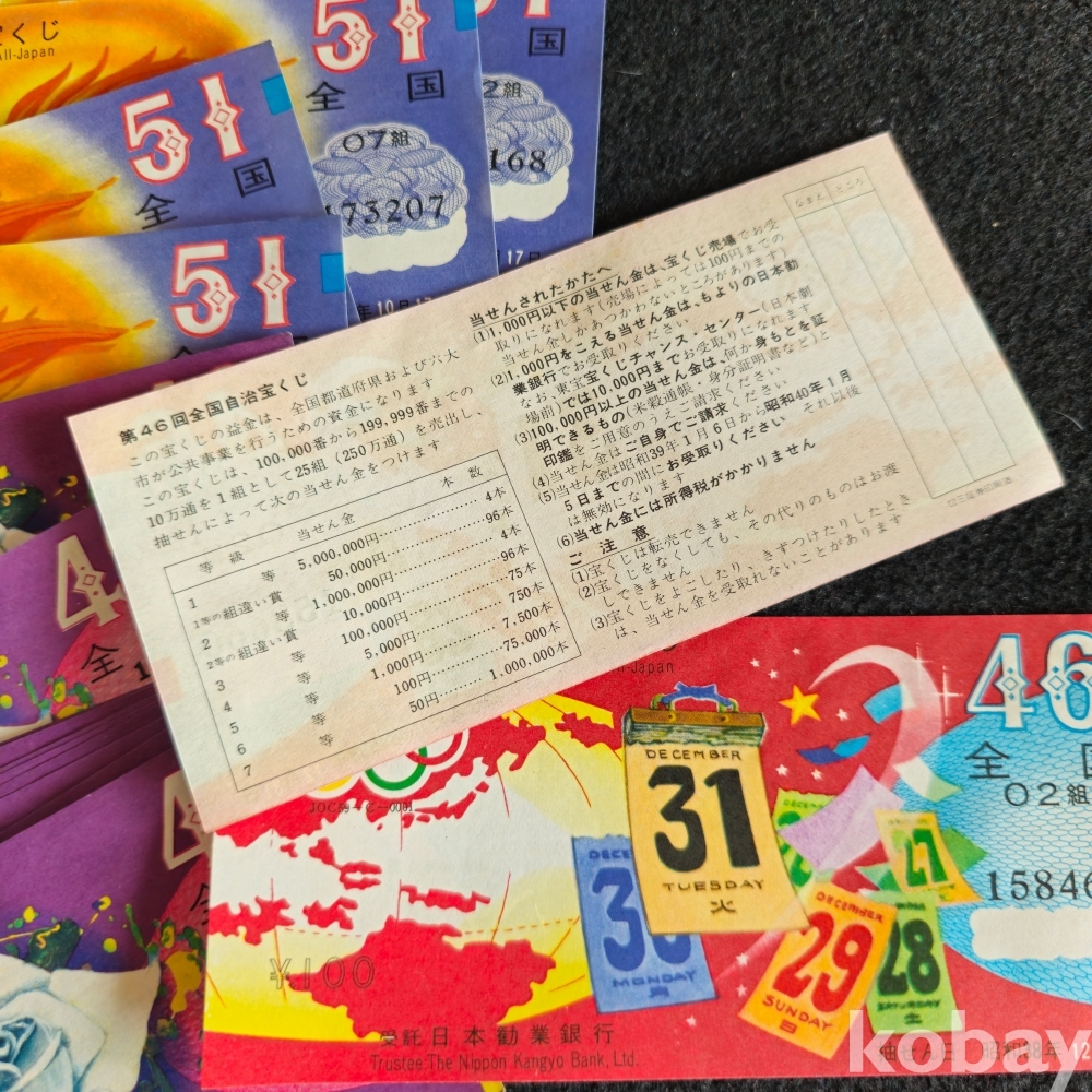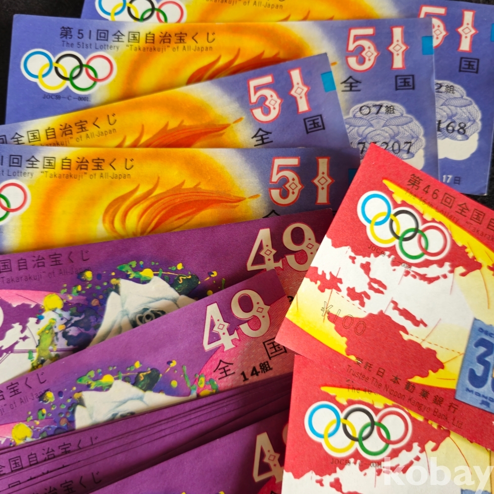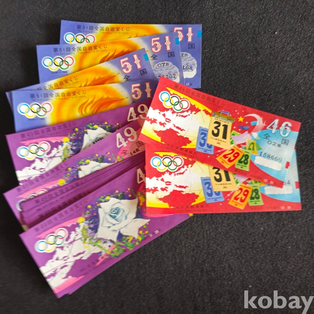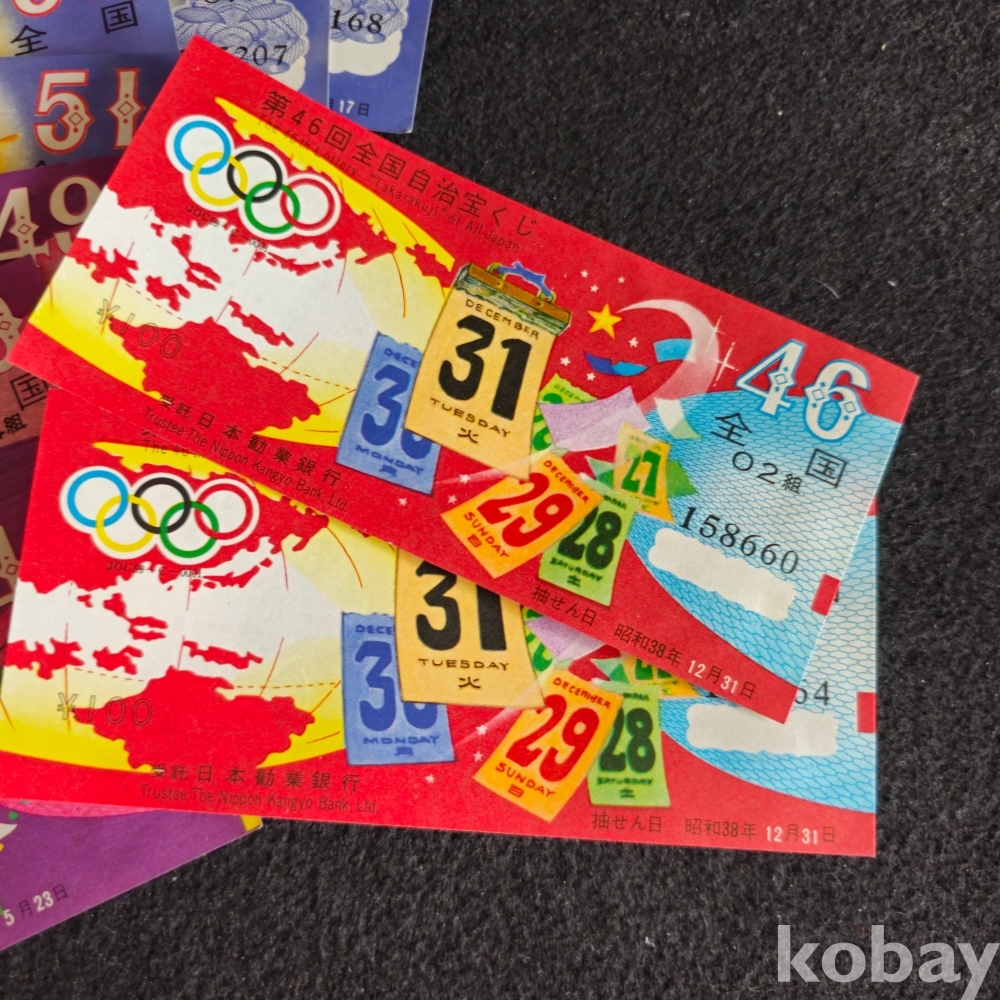 (((올림픽자료/복권)) 오래전 올림픽 엠블렘있는 일본 복권 3종 21장 (소화38년(1963년))