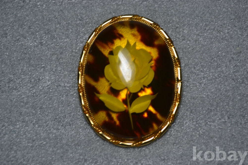 " 매우 귀한 대형작품~(브로치, 펜던트 겸용) ".. " 진품 대모보석 ".. " 아름다운 고급~ 대모보석 대형지름 4 cm X 3 cm~ 진품 대모브로치 " .. 아름다운 장미꽃조각 인태리오 기법~ 꽃그림 조각문양이 아주 이쁜 진품 대모갑브로치.. 얼룩문양 진품 대모보석.. 진품 대모갑(귀갑)