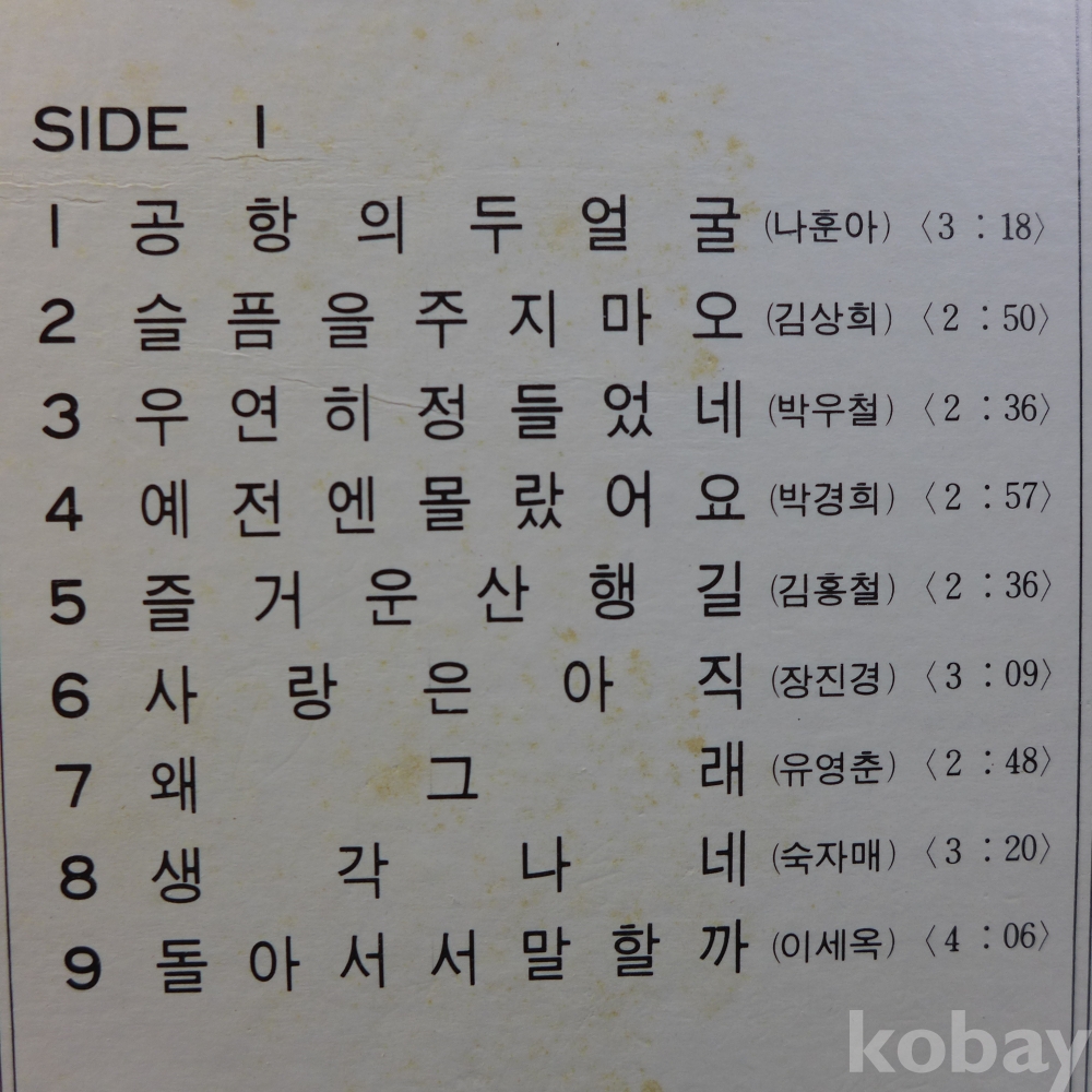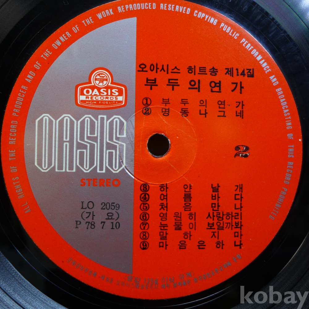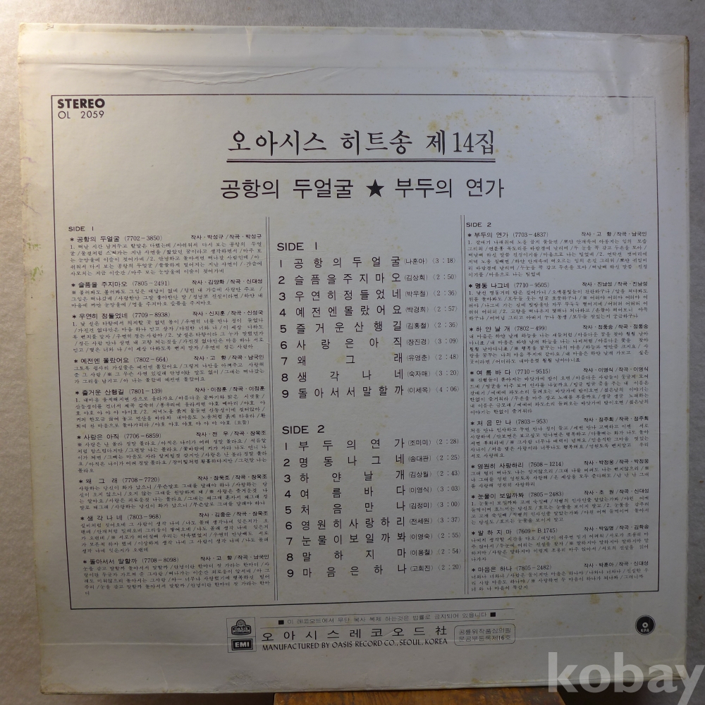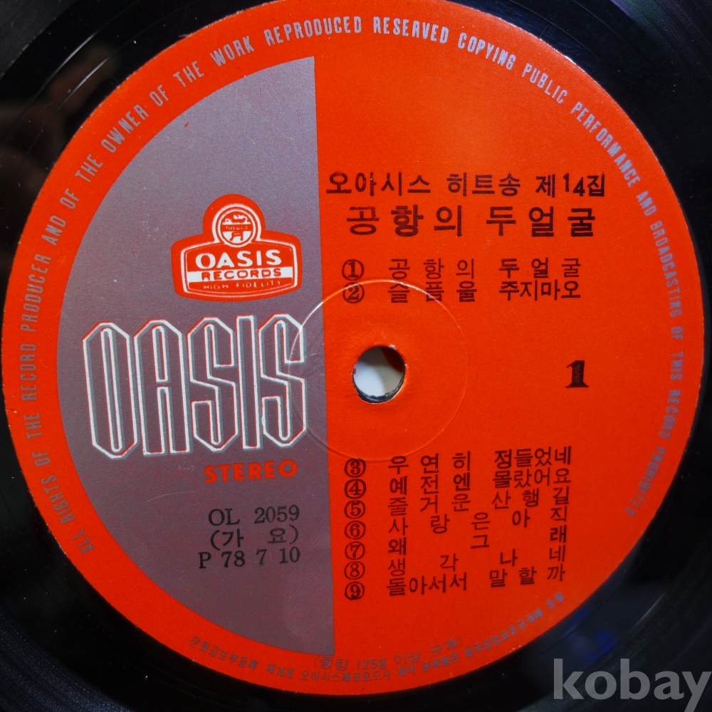 (귀한)LP음반: 오아시스히트송 제14집 :나훈아의"공항의 두얼굴", 김정미"처음 만나"등 수록앨범