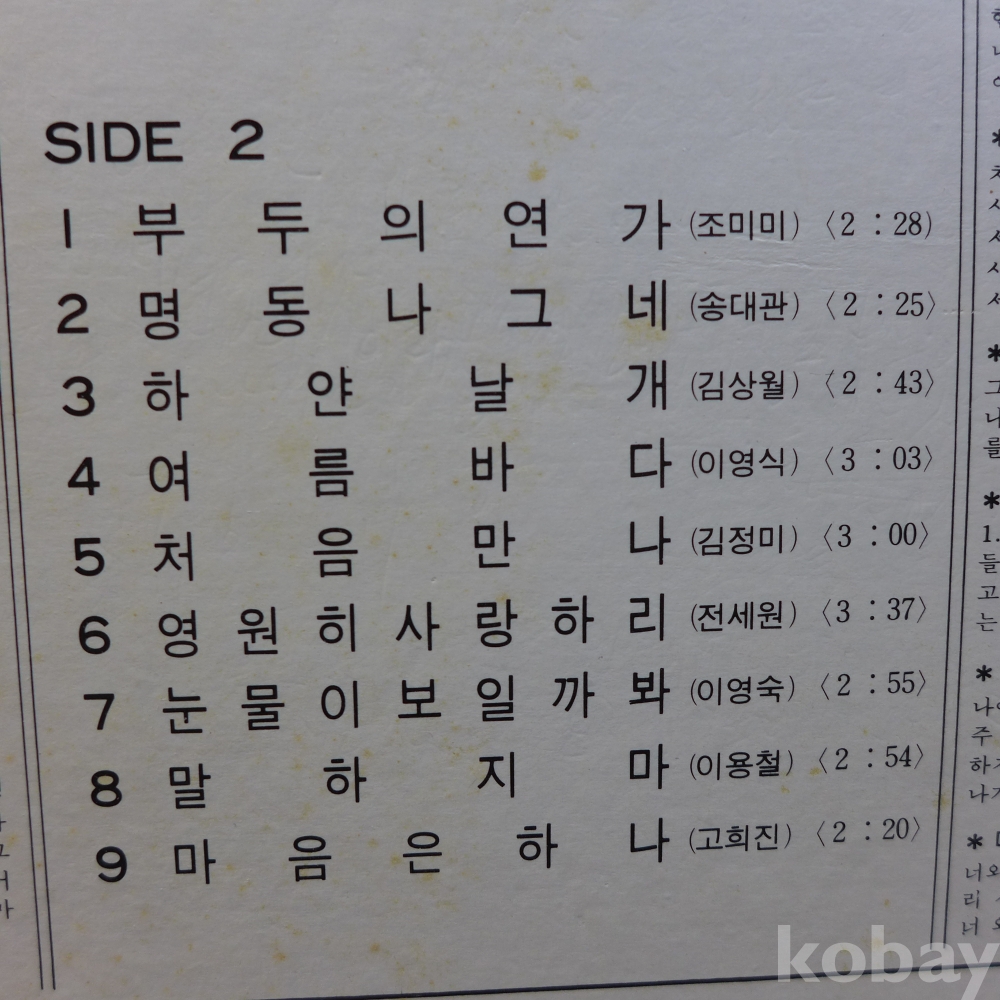 | 자켓상태 | EX : 약간의 마모, 모서리 찢김 존재 | 음반상태 | EX : 재생에 영향 없는 가벼운 기스 존재 | 발매정보 | 초반 | 가사지여부 | 무 |