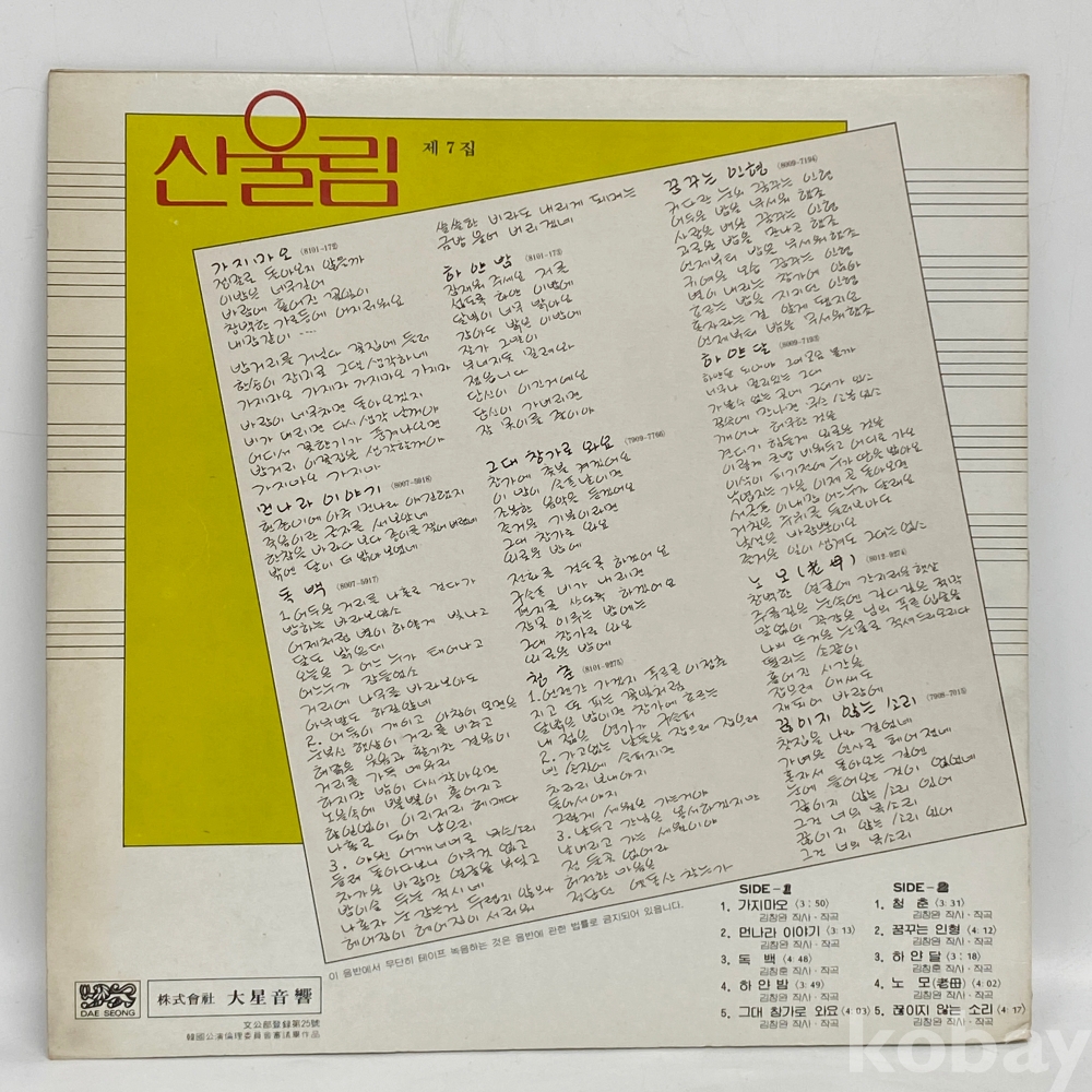 | 물품 크기 | 12인치음반 |