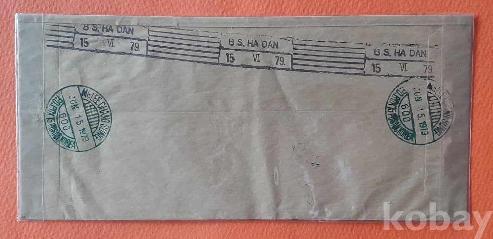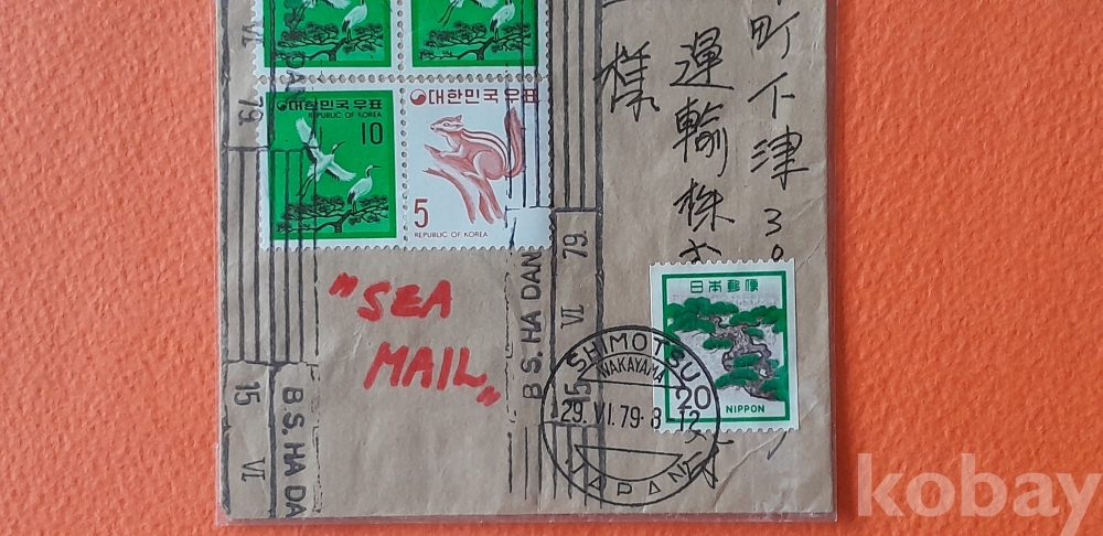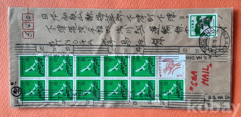10원 기러기 우표 9매 등이 첩부된 일본행(79. 6. 15.)