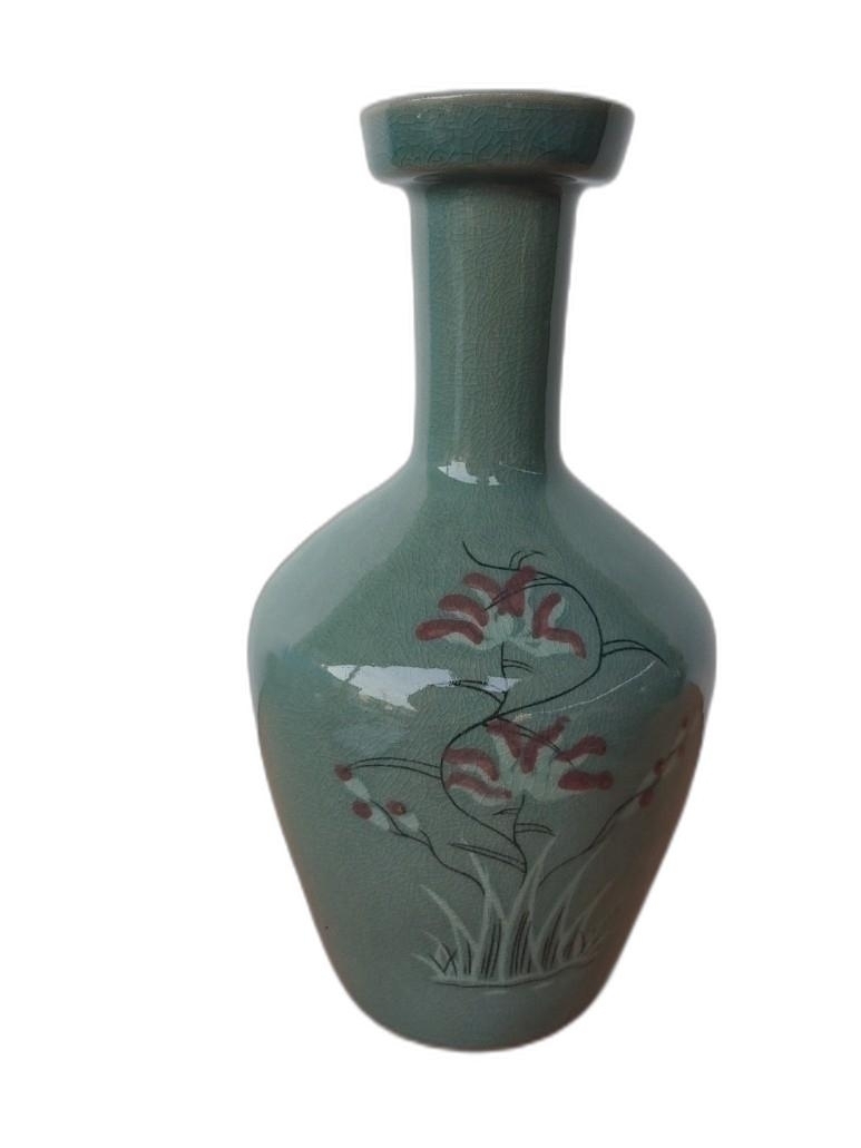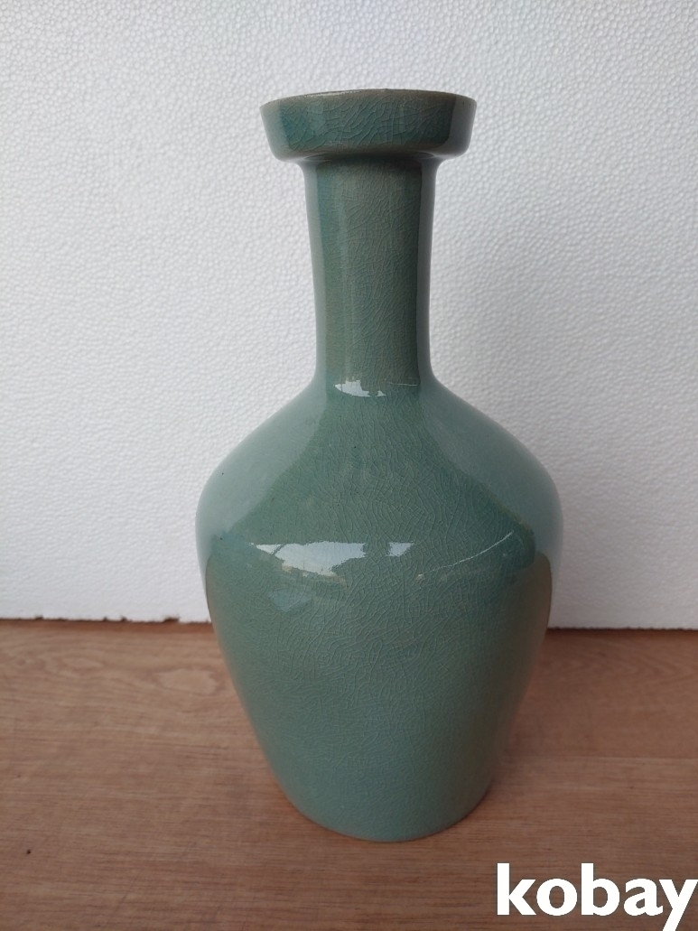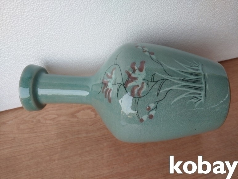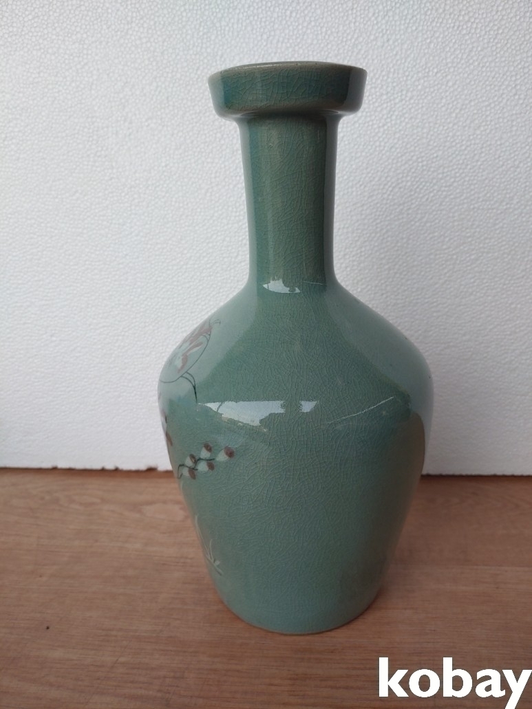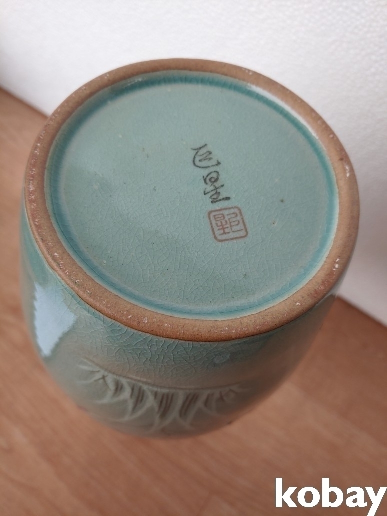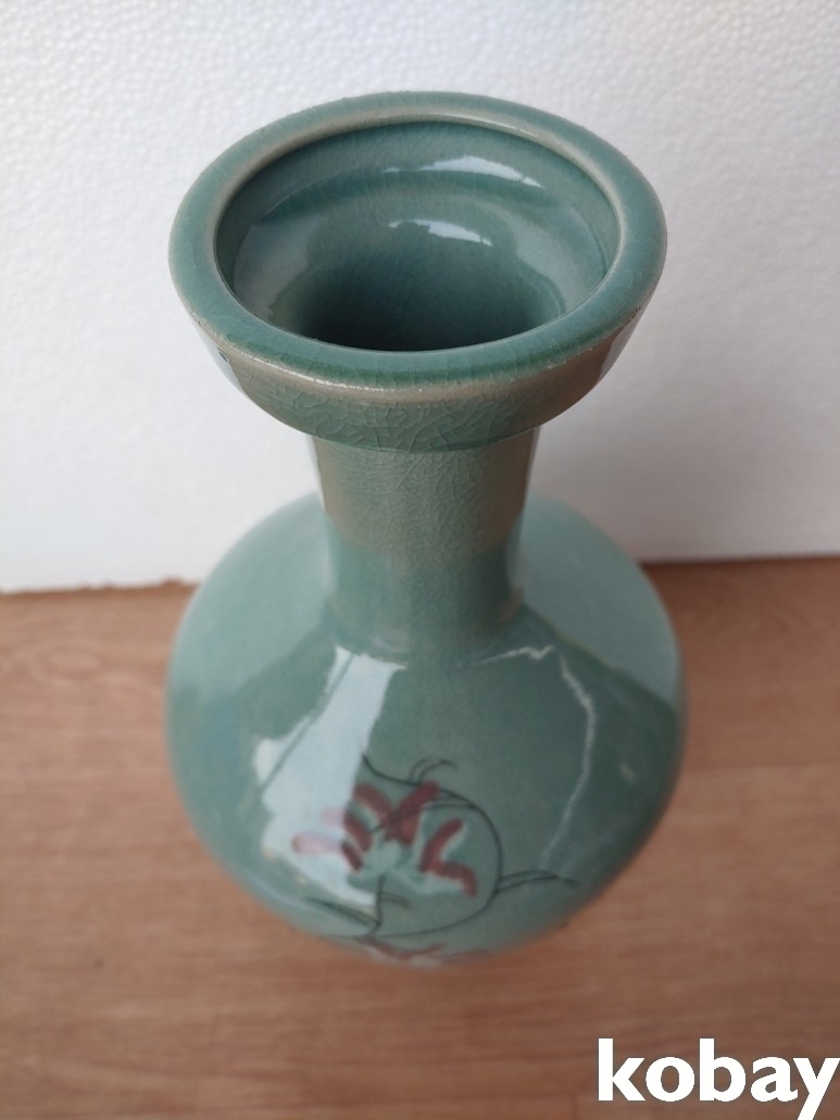 연꽃 문양 입 큰 청자 도자기 입니다.