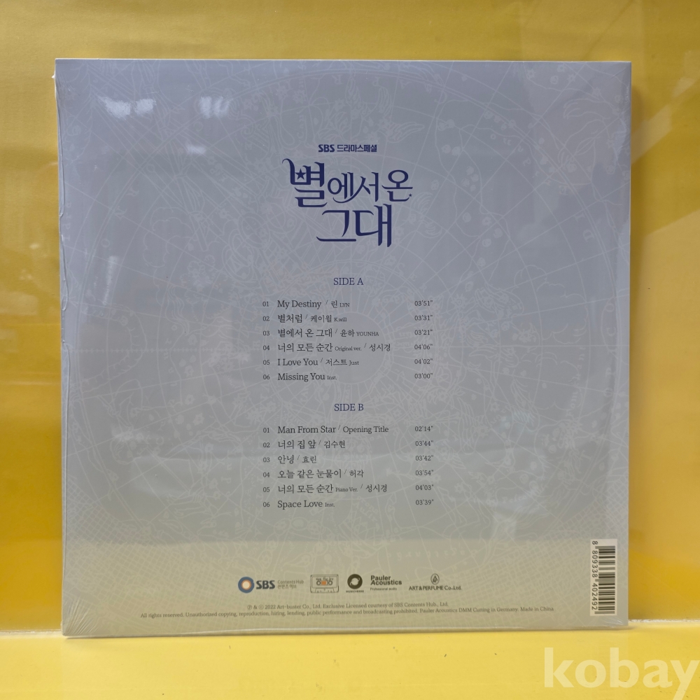 상품 설명 | Side A 1. My Destiny 2. 별처럼 3. 별에서 온 그대 4. 너의 모든 순간 (Original Ver) 5. I Love You 6. Missing You Side B 1. Man From Star 2. 너의 집 앞 3. 안녕 4. 오늘 같은 눈물이 5. 너의 모든 순간 (Piano Ver) 6. Space Love |