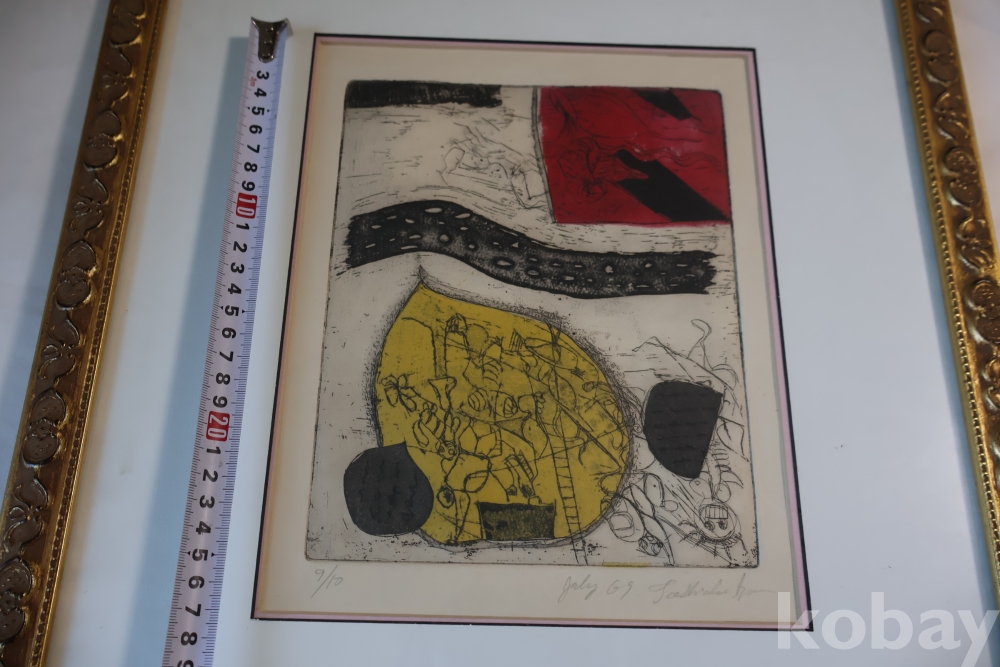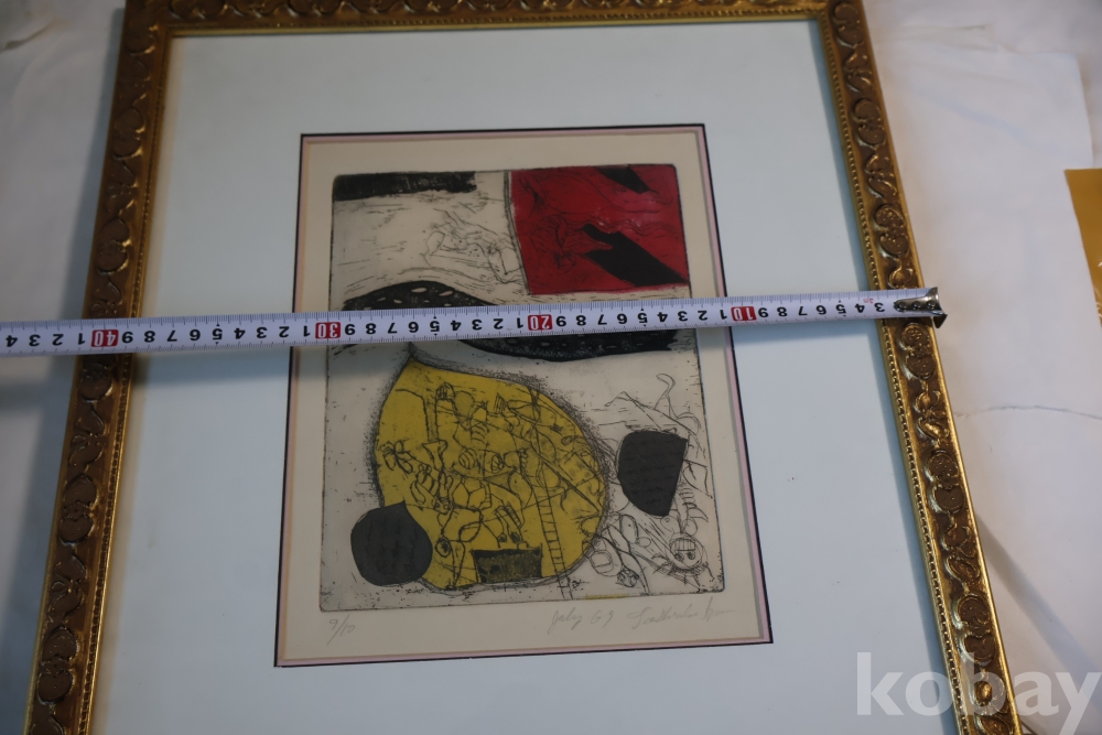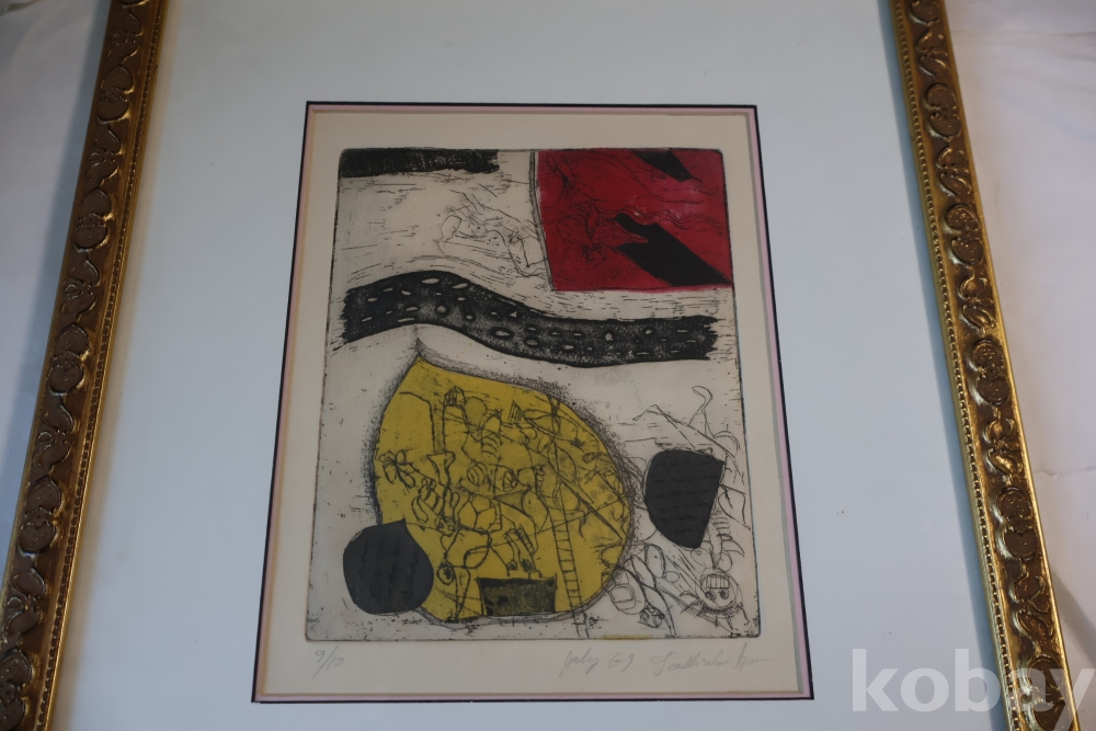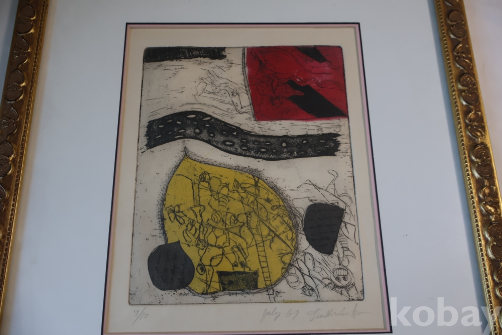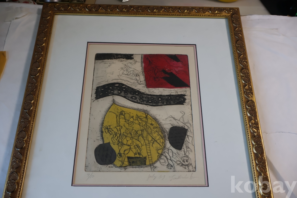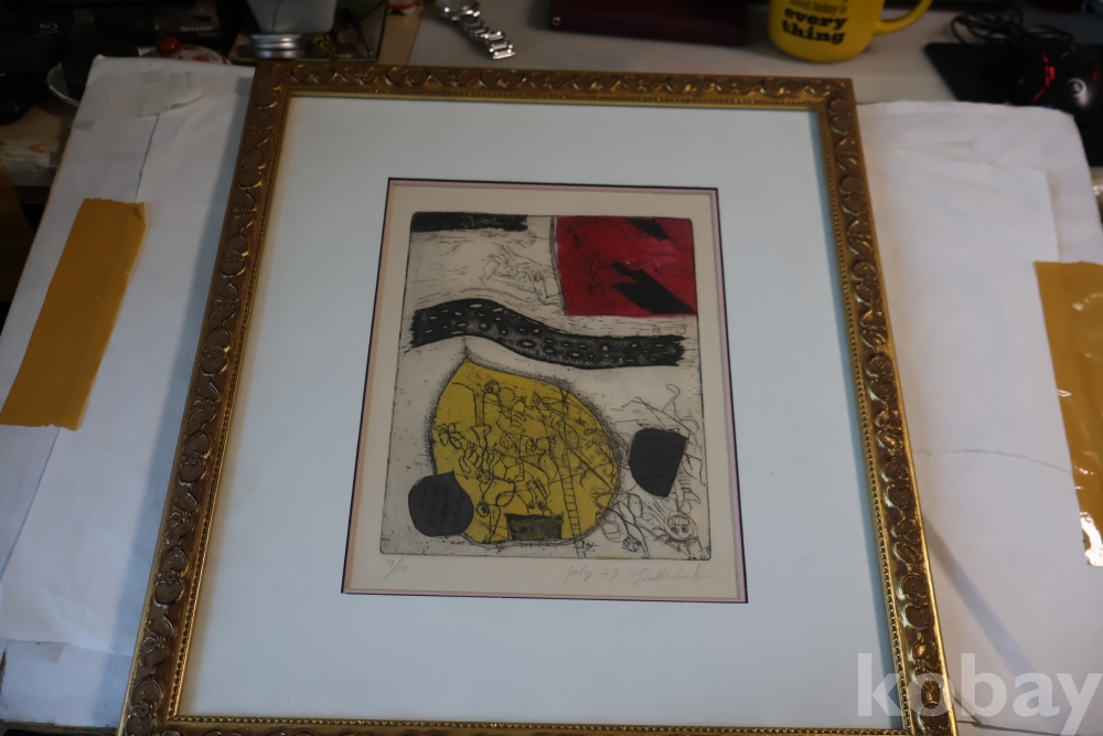 Kenji Ushiku (Japanese 1922- 2012) framed abstract print일본 판화 임니다 멋진 그림 등등 화가의 사인과 넘버가 보임니다 이태리 나무골드 액자 2중 매트를 가진 명화 임니다