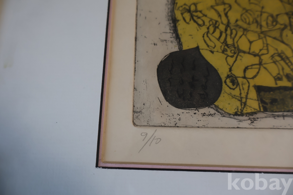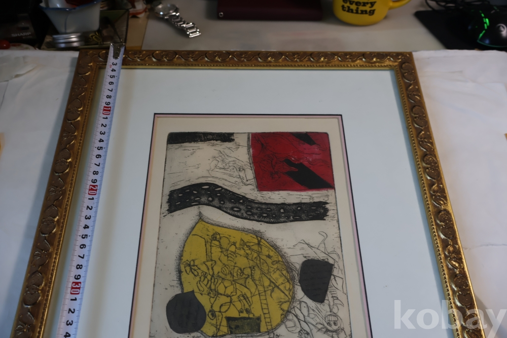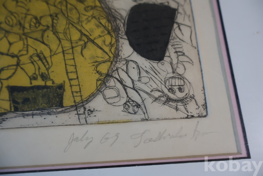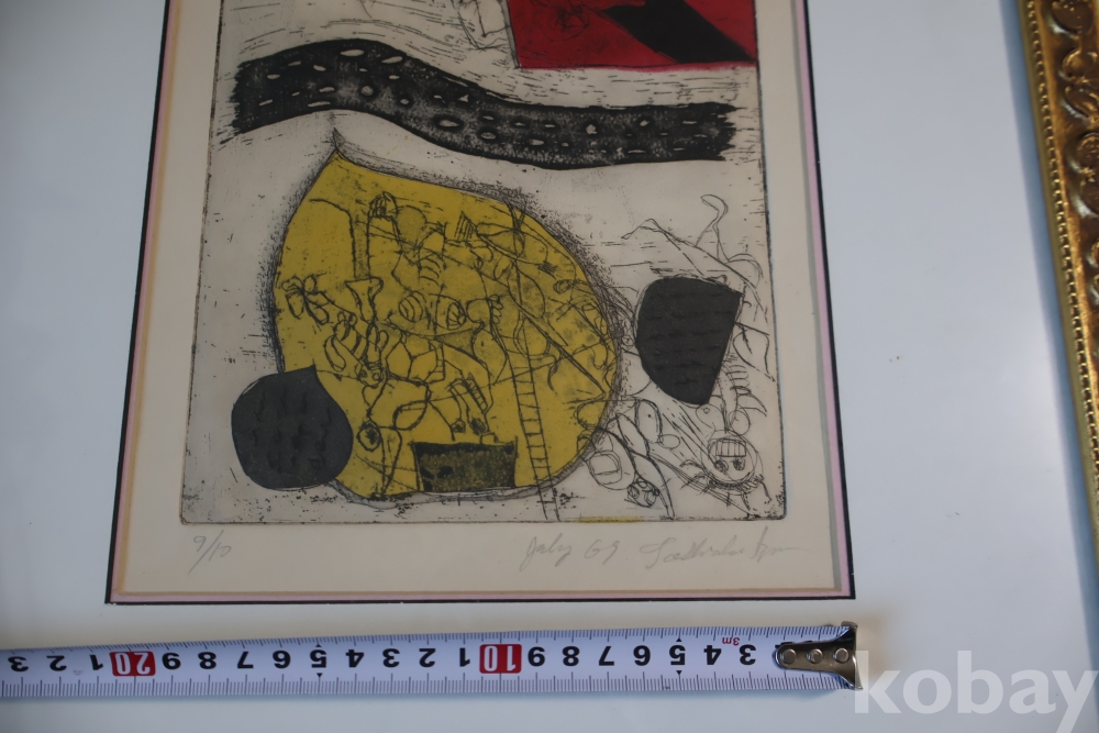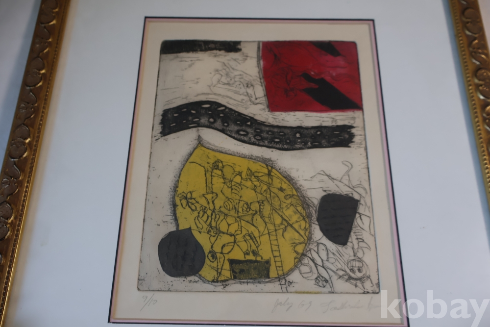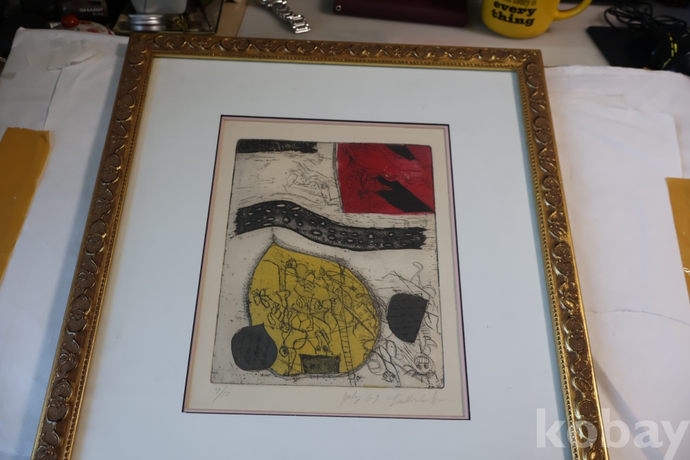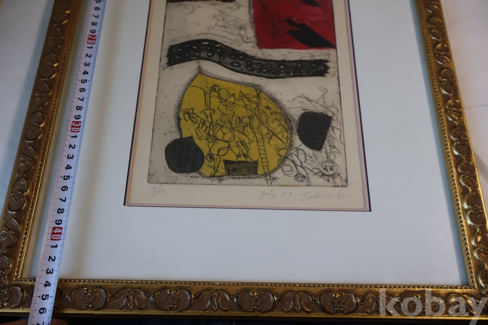 Kenji Ushiku (Japanese 1922- 2012) framed abstract print일본 판화 임니다 멋진 그림 등등 화가의 사인과 넘버가 보임니다 이태리 나무골드 액자 2중 매트를 가진 명화 임니다