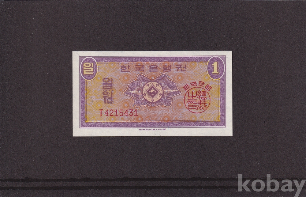 - 한국은행 1962년 영제 일원 T기호 미사용 지폐