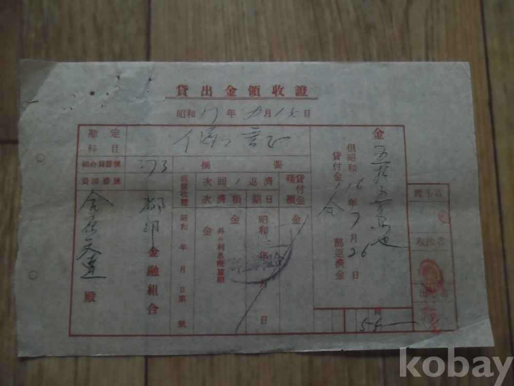 소화17년 금융조합 발행 대출금 영수증
