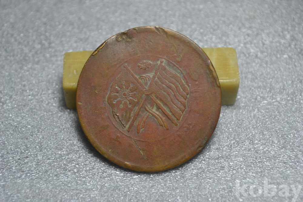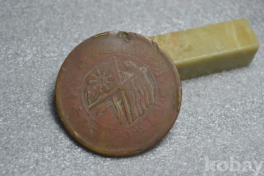 " 귀한종류 (작은 찍힘휘어짐)" ~ 오래되고 사용감이 많은 낡은 보품~ 대형지름 32 mm 진품 중국동폐 중화민국 개국기념폐 쌍기십문 20캐쉬 ".. 진품 중국동폐 민국시대..