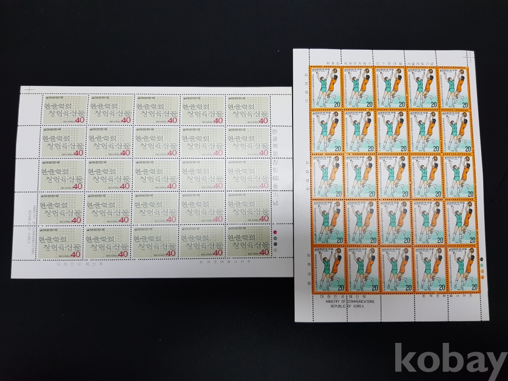 - 미사용 1970년대 기념우표 전지 2종 4매 모음