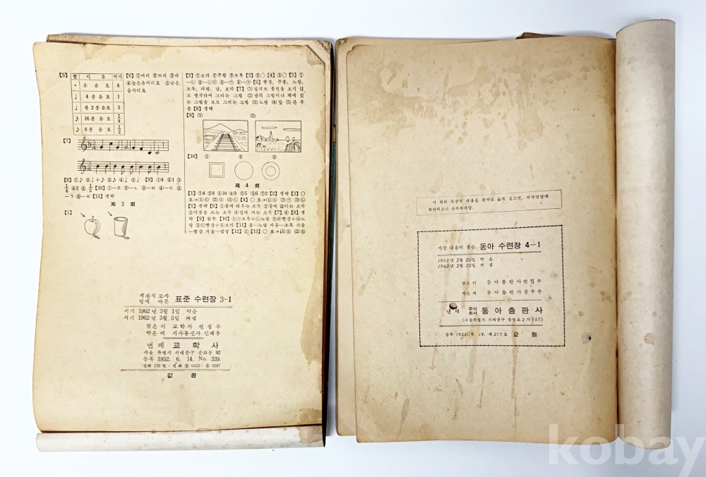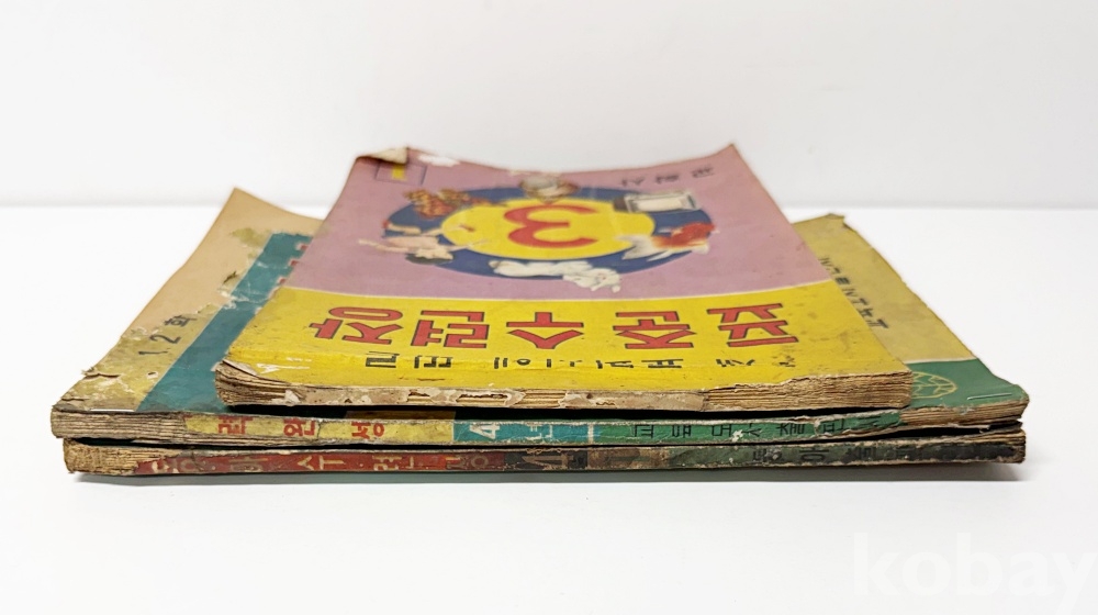 상품 설명 | 1) 새 교과서에 따른 표준 수련장 / 교학사 발행 / 1962년 / 총 104p / 책등 손상 / 15.5 x 25.5 cm 2) 1, 2학기 총정리 학력완성 / 교육도서출판사 발행 / 총 112p / 표지 찢김 및 수리, 뒤표지 일부 및 책등 손상, 판권지 없음 / 19 x 26 cm 3) 동아 수련장 4-1 / 동아출판사 발행 / 1963년 / 앞표지-17p 벌레 먹은 흔적, 책등 손상 / 19 x 26 cm | ||