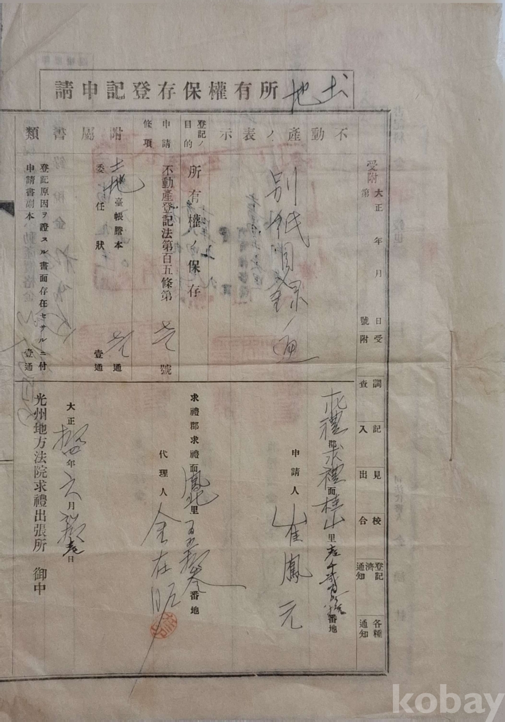 광주지방법원 구례출장소에 올린 등기신청서이다.