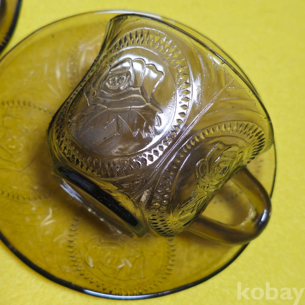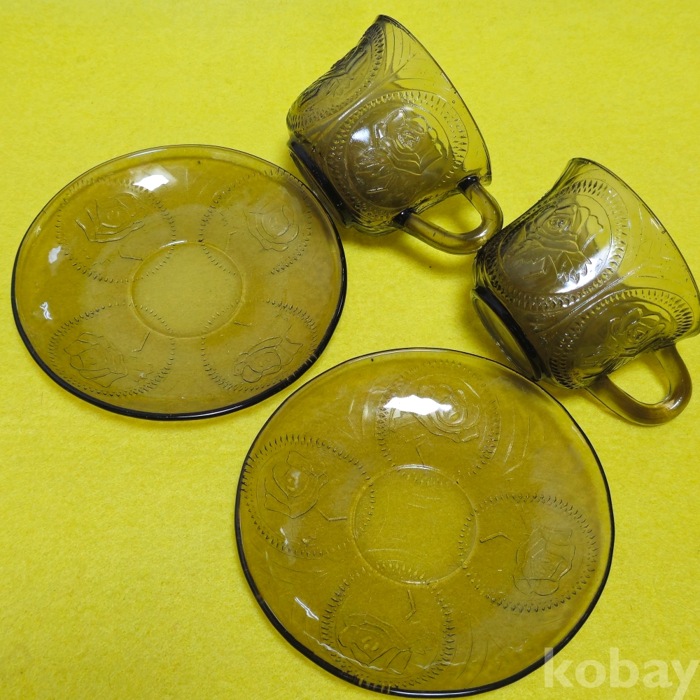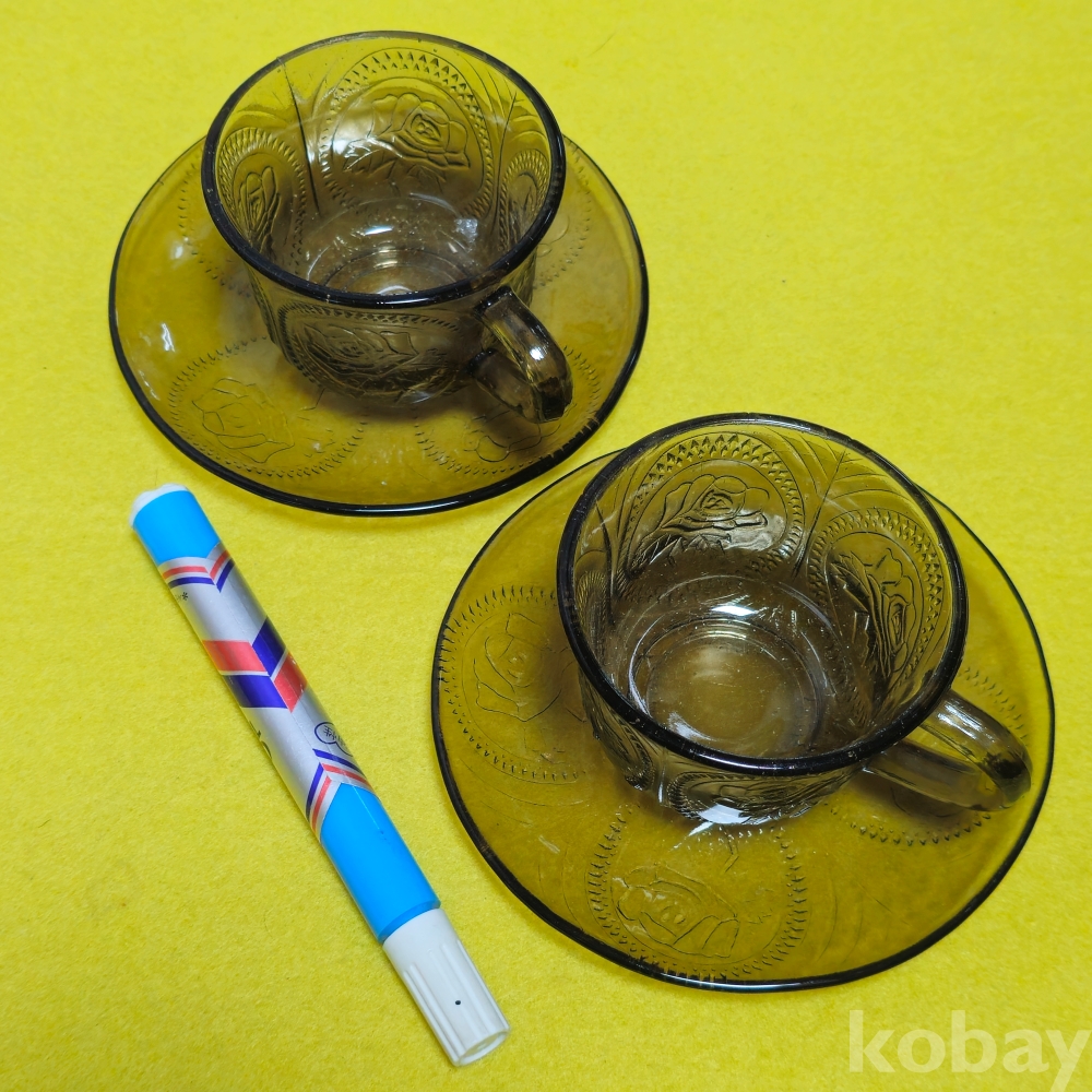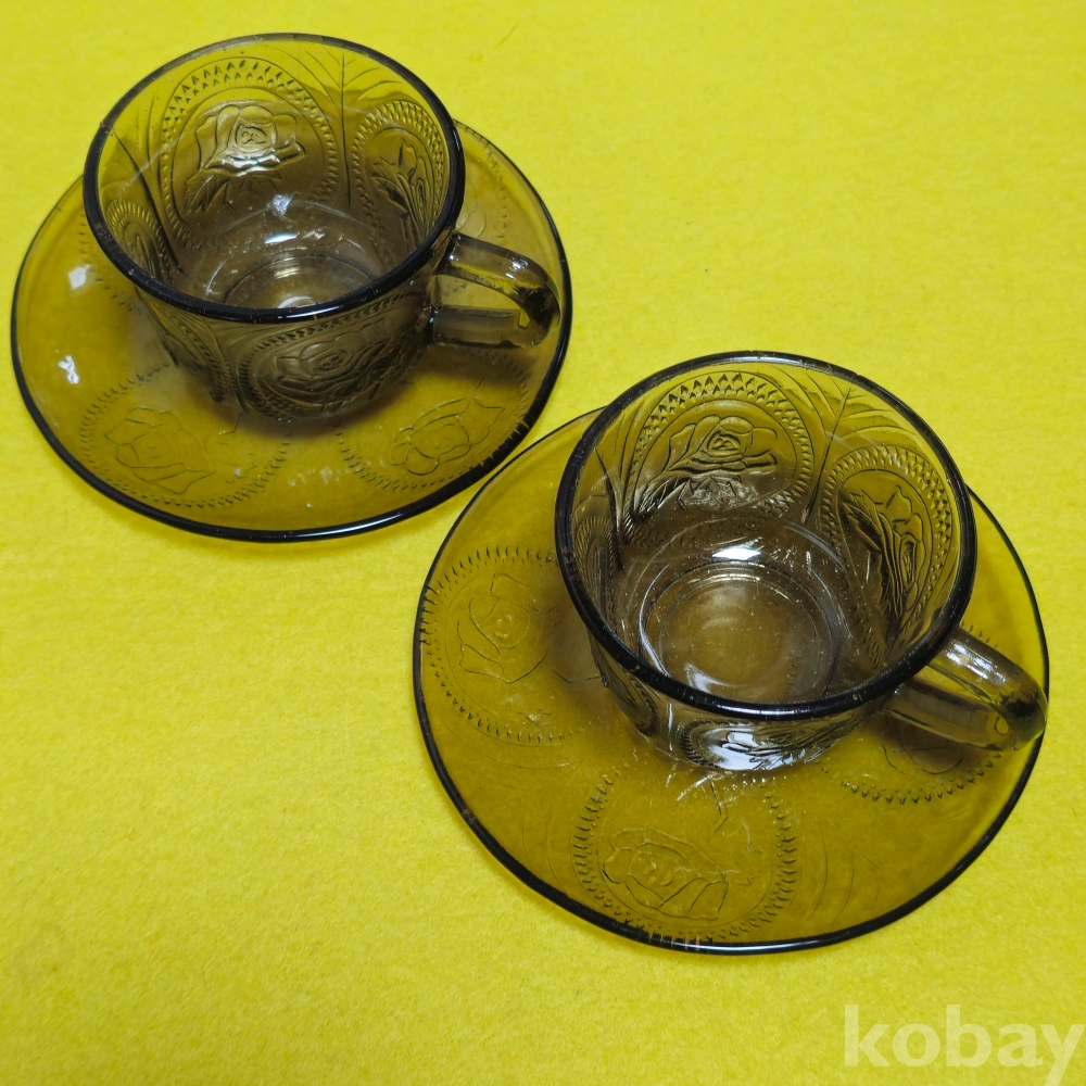 (((근현대사자료/고전커피잔))) 1980년대 장미꽃문양이 이쁜 커플 고전 커피잔