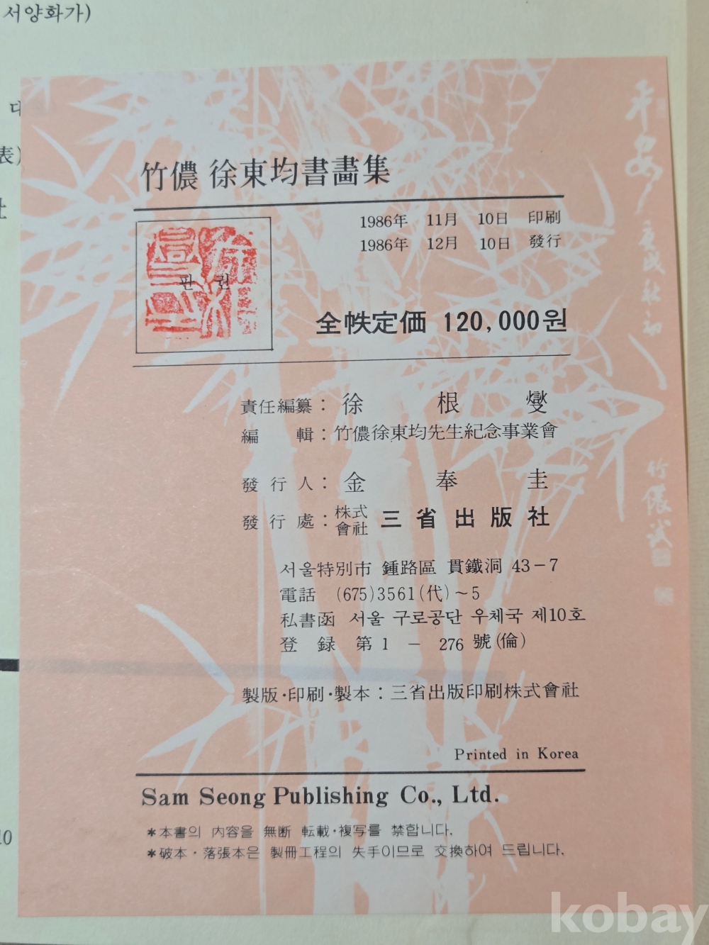 1986년 삼성출판 초판, 죽농기념사업회편찬.