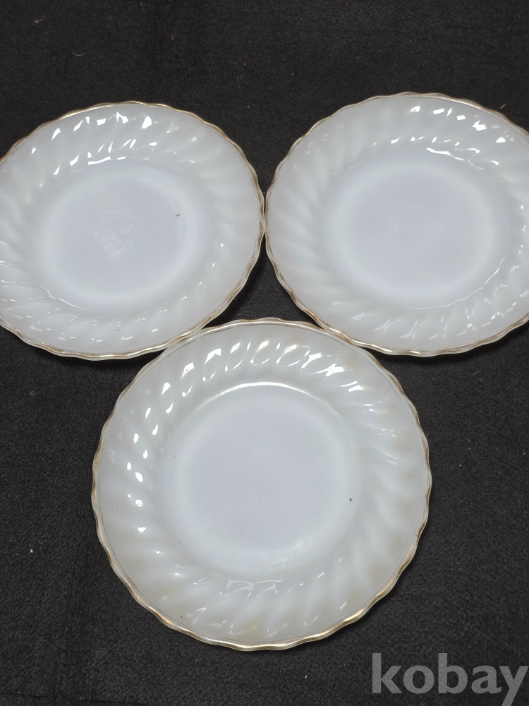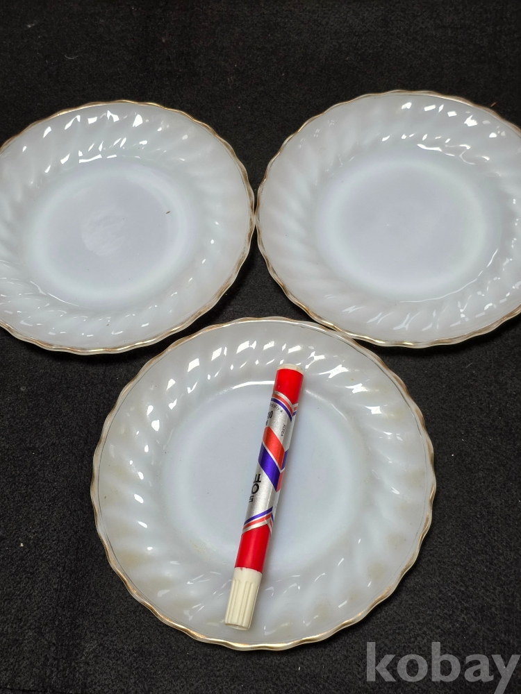 (((빈티지접시/밀크그릇))) 오래전 미국 앵커호킹 (ANCHOR HOCKING) 빈티지 밀크 빗살무늬 접시3개
