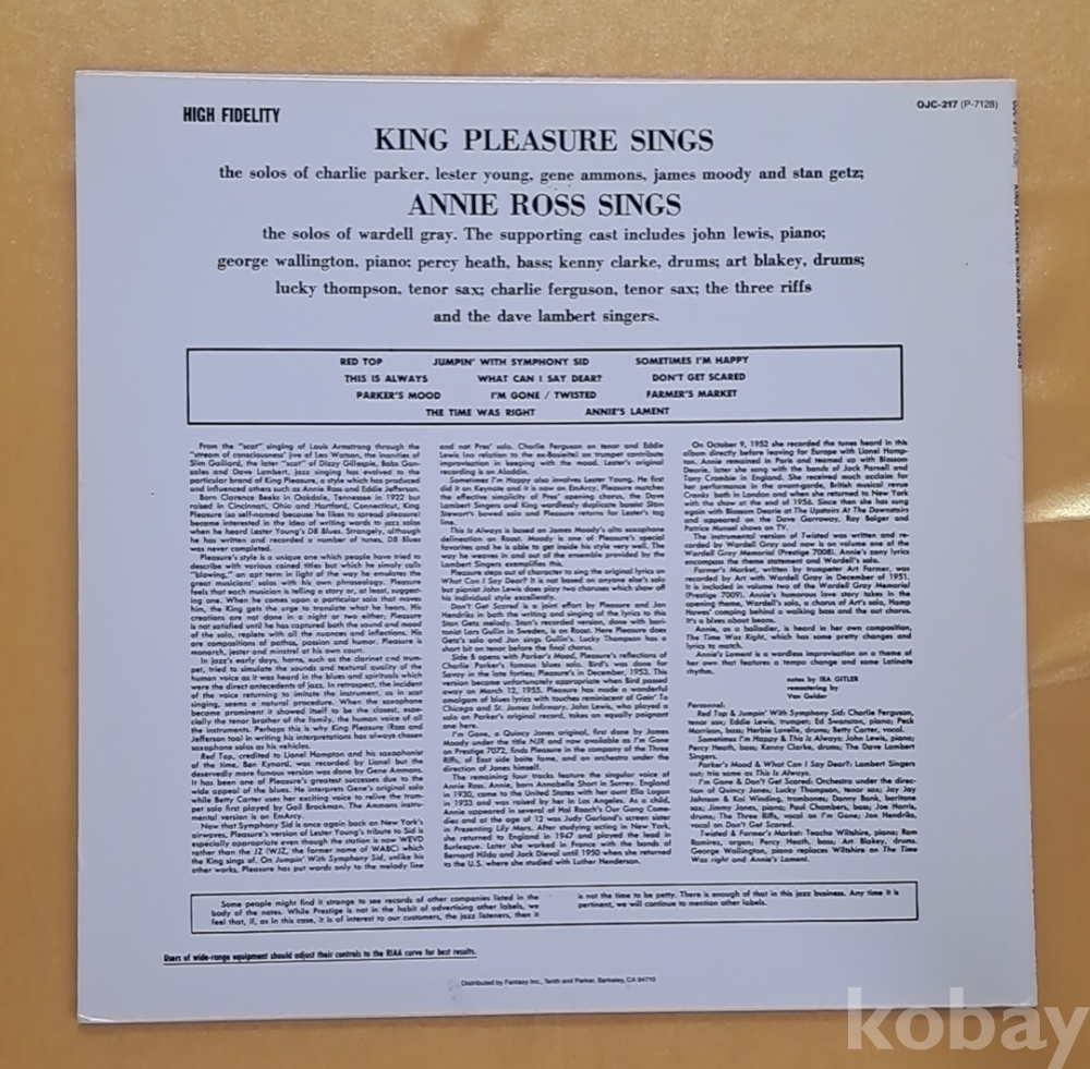 King Pleasure와 Annie Ross가 함께 참여한 재즈 앨범인 "King Pleasure Sings / Annie Ross Sings lp 입니다