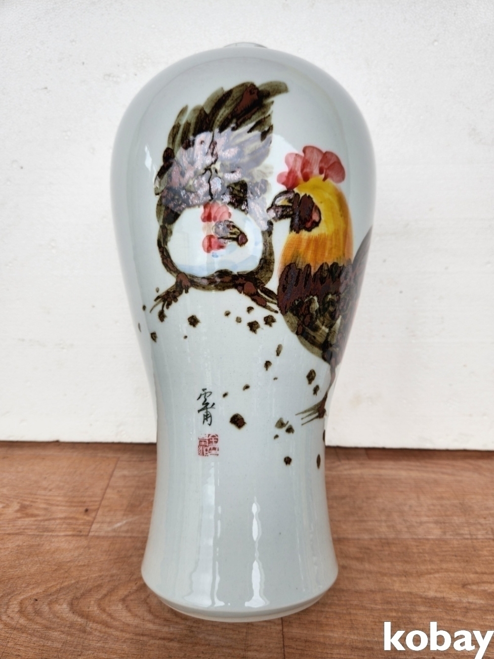 운보 닭 그림이 있는 대형 매병 도자기 입니다.