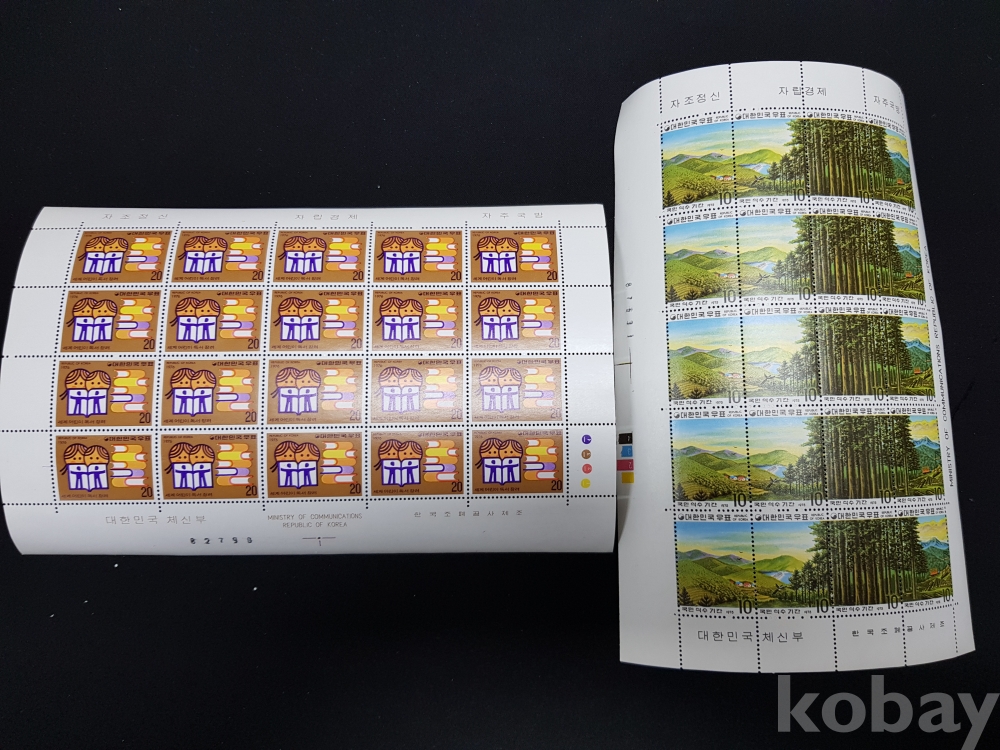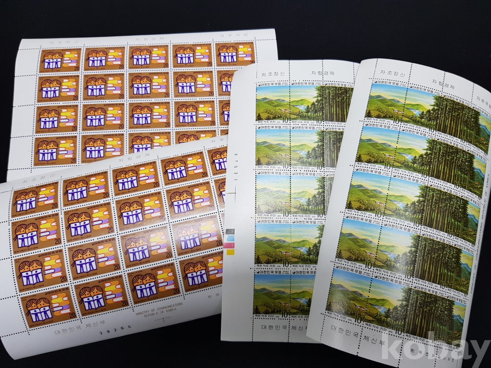 - 미사용 1970년대 국민 식수 기간 등 기념 우표 전지 2종 4매 모음