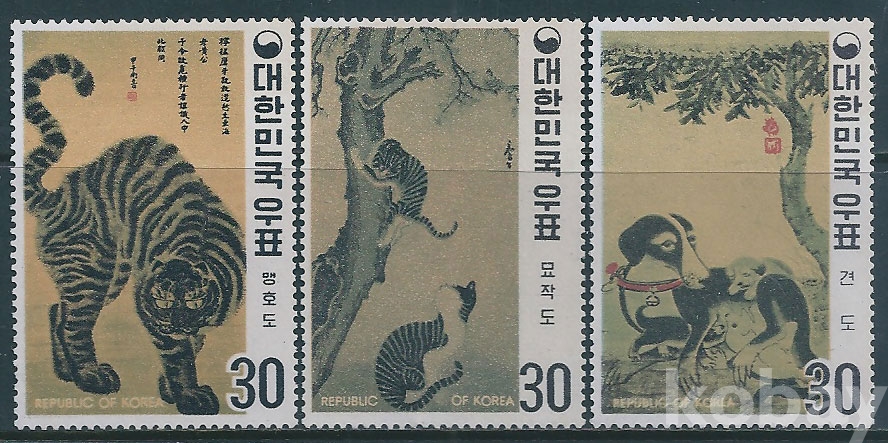 (한국우표-109)1970년1차명화시리즈제2집우표3종(미사용제)-MNH, VF